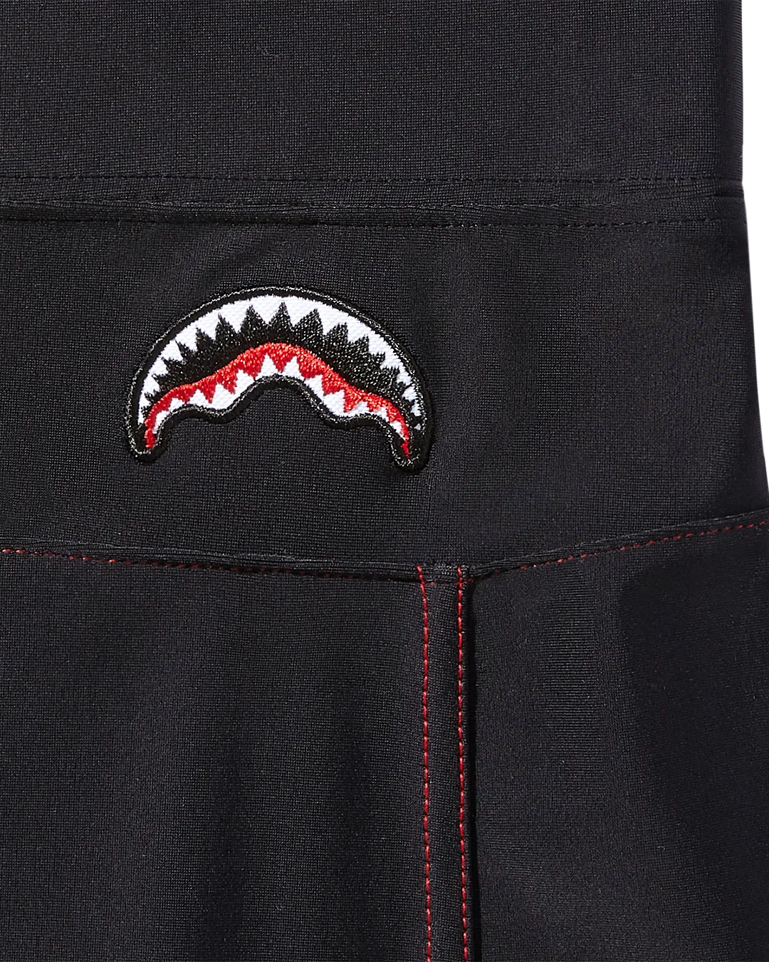 Contrast top stitching and sharkmouth logo embroidery detail on back.