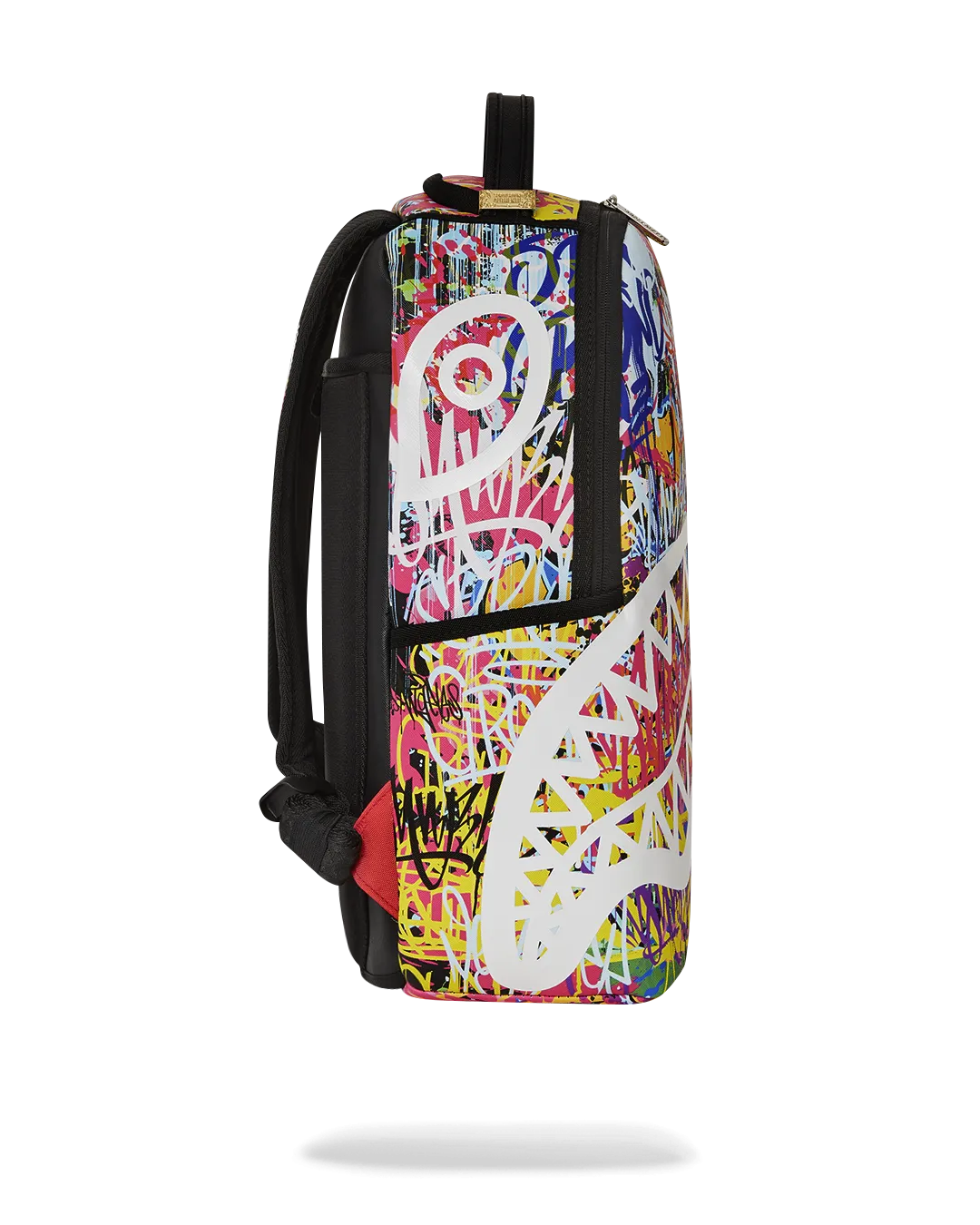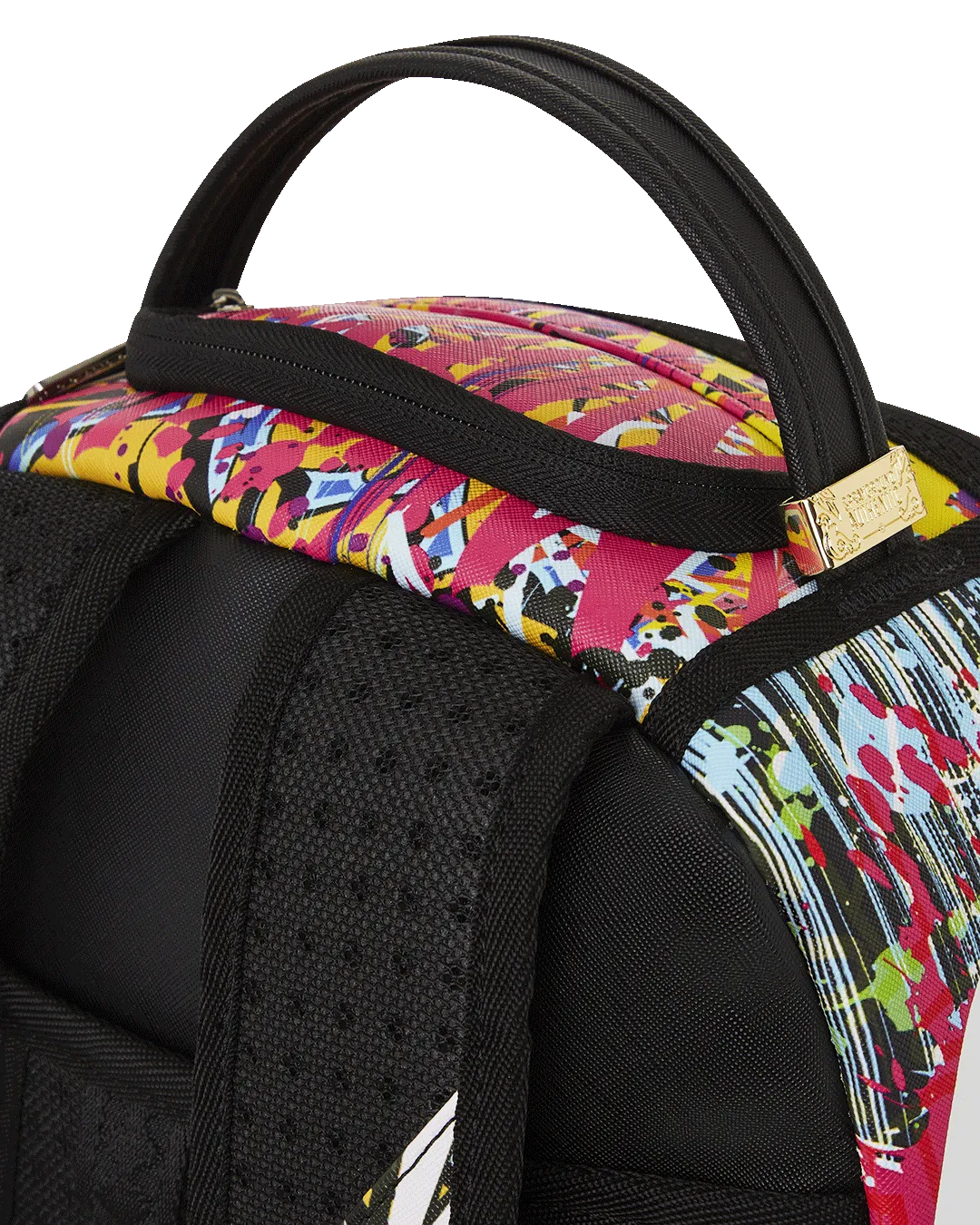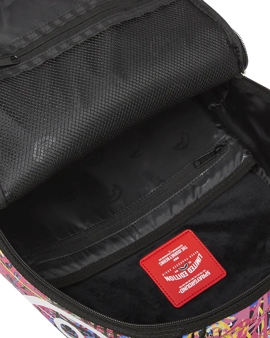 Dimensions: 18″ x 6″ x 11.5″ ? Front zipper pocket ? Side pockets ? Zippered Stash pocket ? Separate velour sunglass compartment ? Ergonomic mesh back padding ? Adjustable Straps for custom sizing ? Gold zippers with metal hardware ? Metal “Sprayground Authentic” badge ? Slide through back sleeve connects to carry-on luggage to free your hands