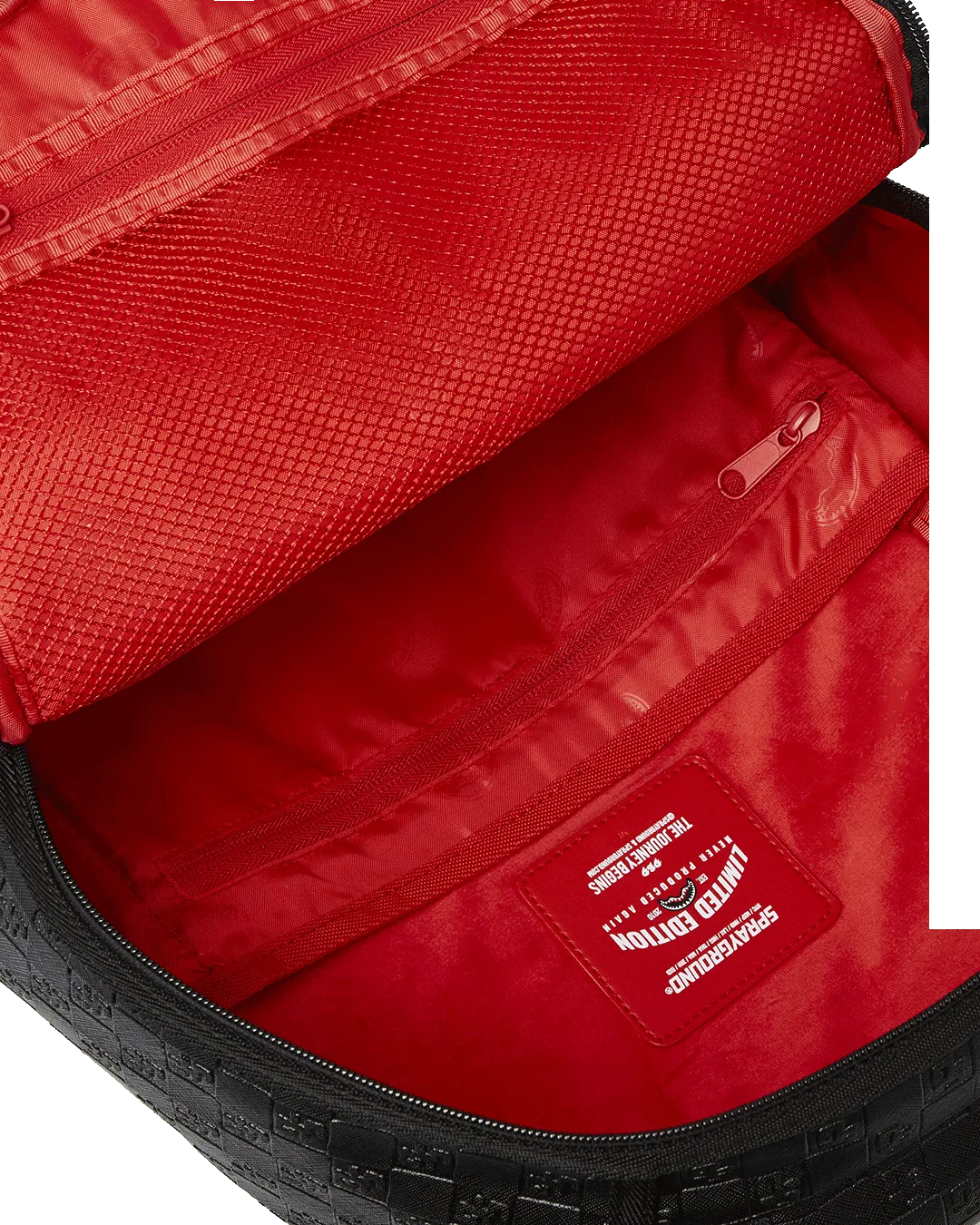 Dimensions: 18″ x 6″ x 11.5″ ? Front zipper pocket ? Side pockets ? Zippered Stash pocket ? Separate velour sunglass compartment ? Ergonomic mesh back padding ? Adjustable Straps for custom sizing ? Gold zippers with metal hardware ? Metal “Sprayground Authentic” badge ? Slide through back sleeve connects to carry-on luggage to free your hands