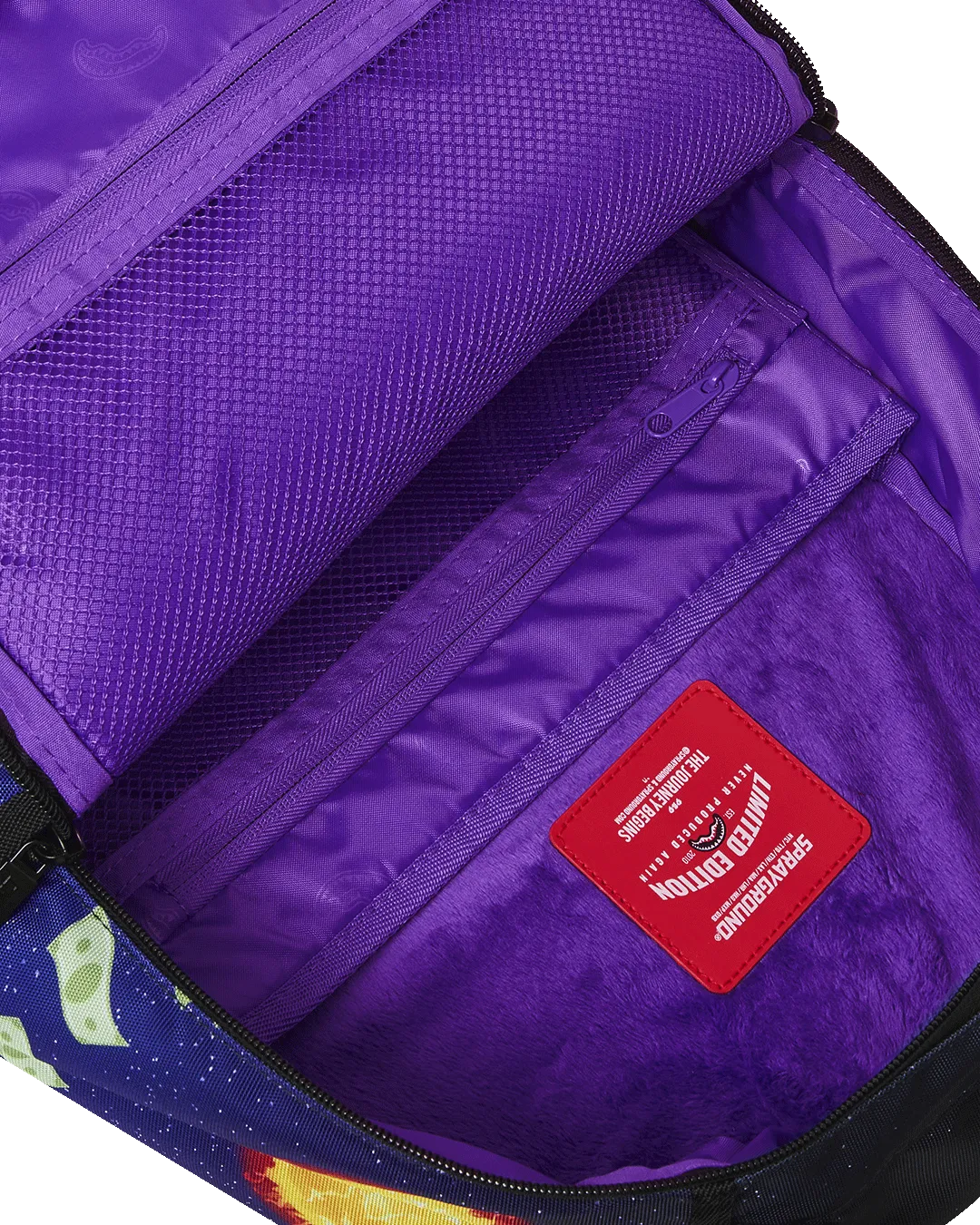 Dimensions: 18″ x 6″ x 11.5″ ? Front zipper pocket ? Side pockets ? Zippered Stash pocket ? Separate velour sunglass compartment ? Ergonomic mesh back padding ? Adjustable Straps for custom sizing ? Gold zippers with metal hardware ? Metal “Sprayground Authentic” badge ? Slide through back sleeve connects to carry-on luggage to free your hands