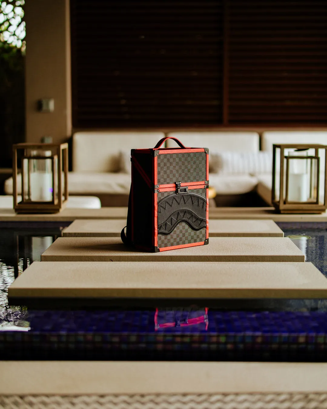 This unique Backpack is an instant classic. Drawing inspiration from a boxy shaped backpack that travelers and hikers used to use as one of the earlier designs of backpacks in the early 1900??s. Reinforcing it with a wooden frame and checkered shark pattern and luxe interior design for the modern adventurer. I call it the CHATURANGA SHARK to pay homage to the first ever board game that featured a CHESS PATTERN invented in India called Chaturanga Board Game.. Which would evolve into the CHECKERED PATTERN we all love and know in Fashion.?