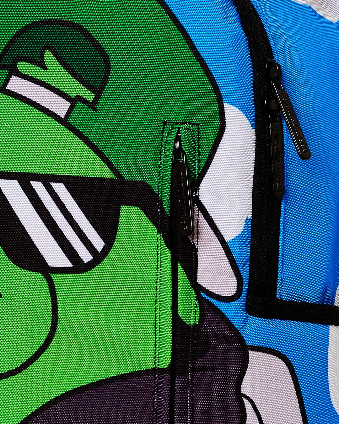 Dimensions: 18″ x 6″ x 11.5″ ? Front zipper pocket ? Side pockets ? Zippered Stash pocket ? Separate velour sunglass compartment ? Ergonomic mesh back padding ? Adjustable Straps for custom sizing ? Gold zippers with metal hardware ? Metal “Sprayground Authentic” badge ? Slide through back sleeve connects to carry-on luggage to free your hands