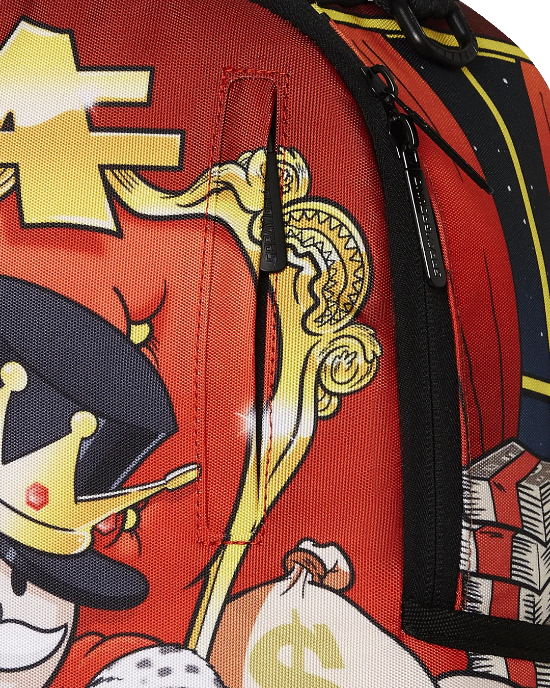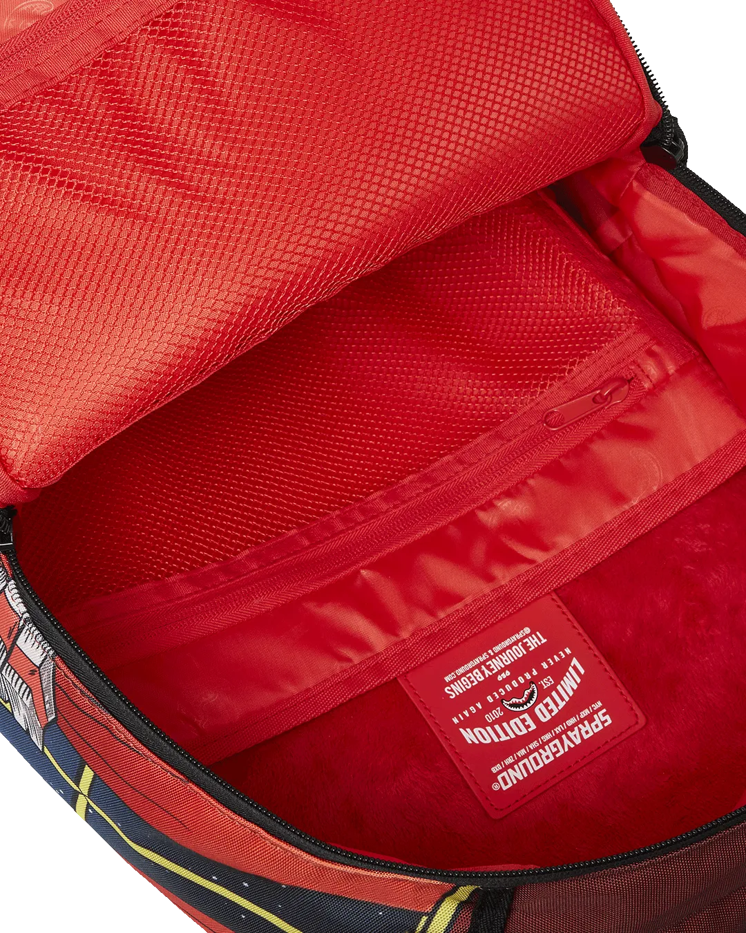 Dimensions: 18″ x 6″ x 11.5″ ? Front zipper pocket ? Side pockets ? Zippered Stash pocket ? Separate velour sunglass compartment ? Ergonomic mesh back padding ? Adjustable Straps for custom sizing ? Gold zippers with metal hardware ? Metal “Sprayground Authentic” badge ? Slide through back sleeve connects to carry-on luggage to free your hands