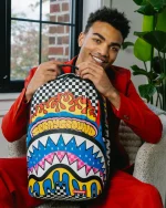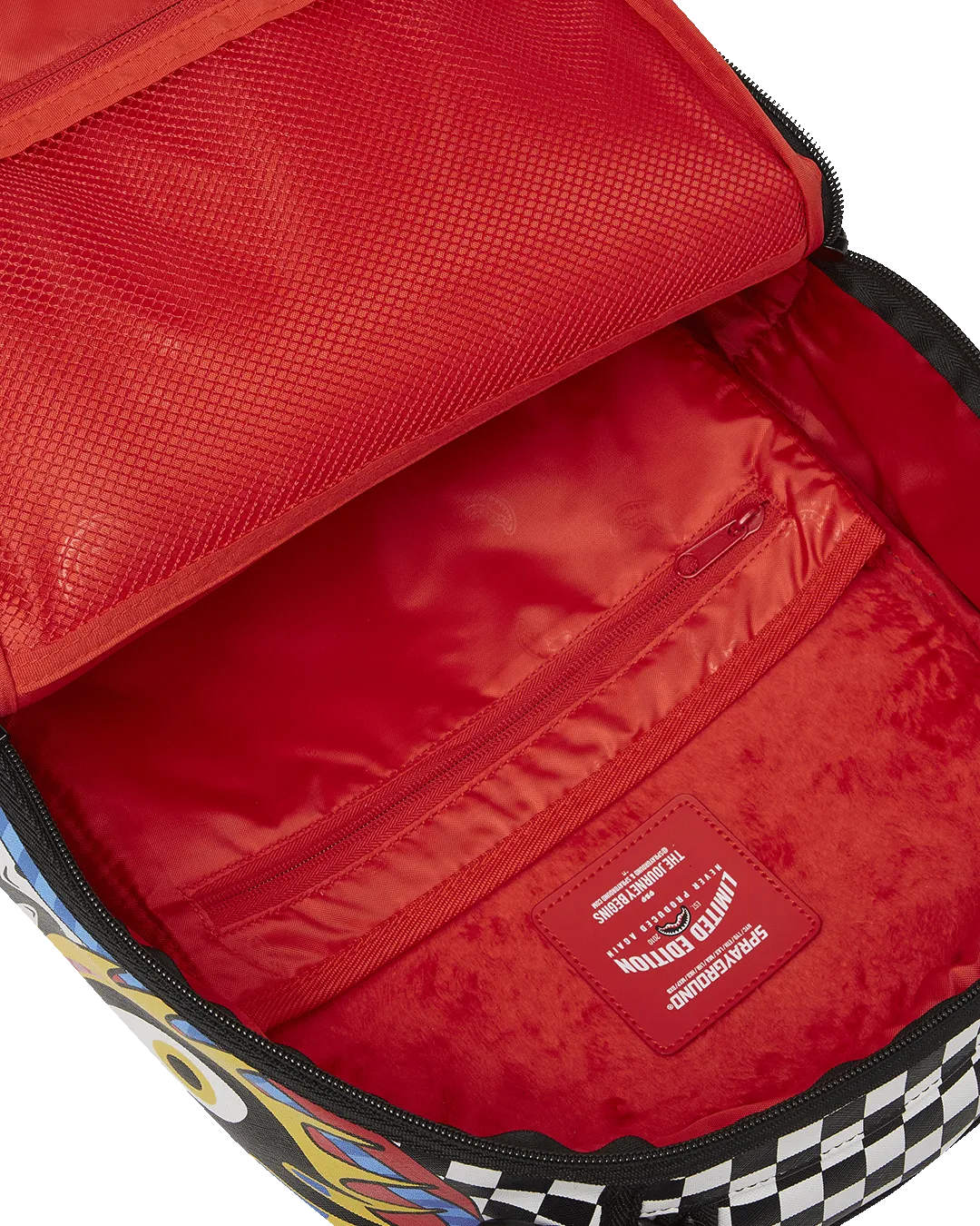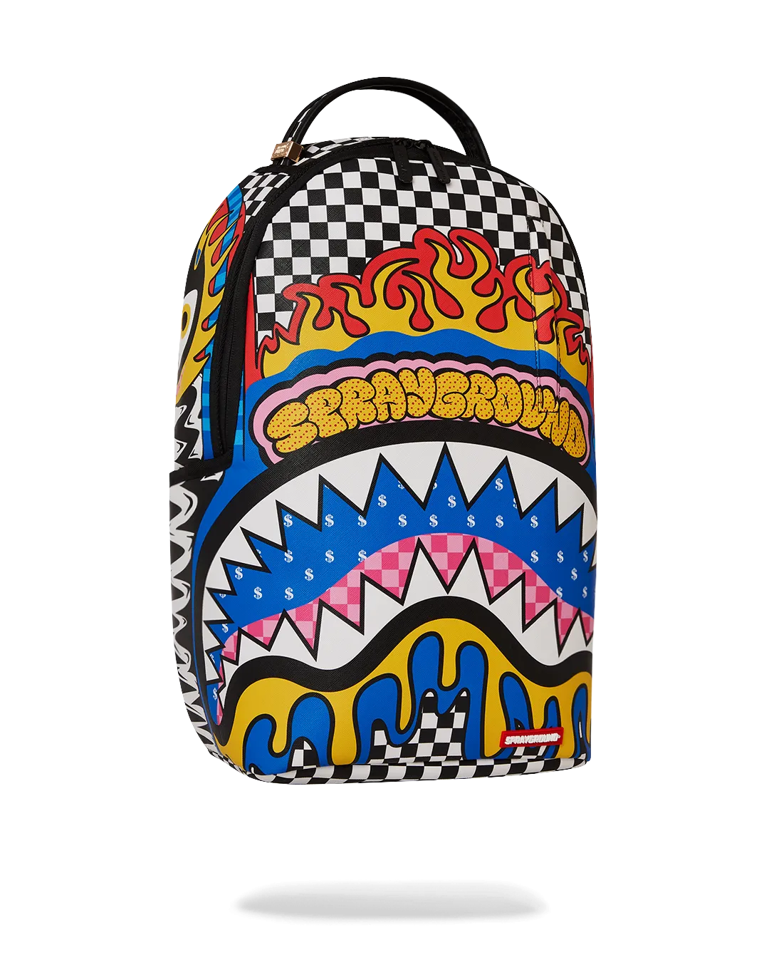 Dimensions: 18″ x 6″ x 11.5″ ? Front zipper pocket ? Side pockets ? Zippered Stash pocket ? Separate velour sunglass compartment ? Ergonomic mesh back padding ? Adjustable Straps for custom sizing ? Gold zippers with metal hardware ? Metal “Sprayground Authentic” badge ? Slide through back sleeve connects to carry-on luggage to free your hands