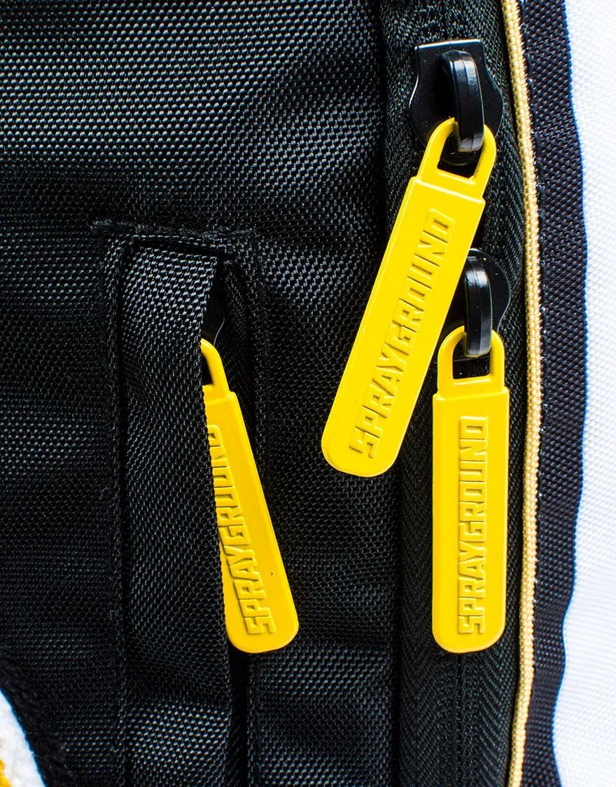 Dimensions: 18″ x 6″ x 11.5″ ? Front zipper pocket ? Side pockets ? Zippered Stash pocket ? Ergonomic mesh back padding ? Adjustable Straps for custom sizing ? Nylon Zippers with Metal Hardware ? Metal “Sprayground Authentic” badge ? Slide through back sleeve connects to Carry on luggage to free your hands