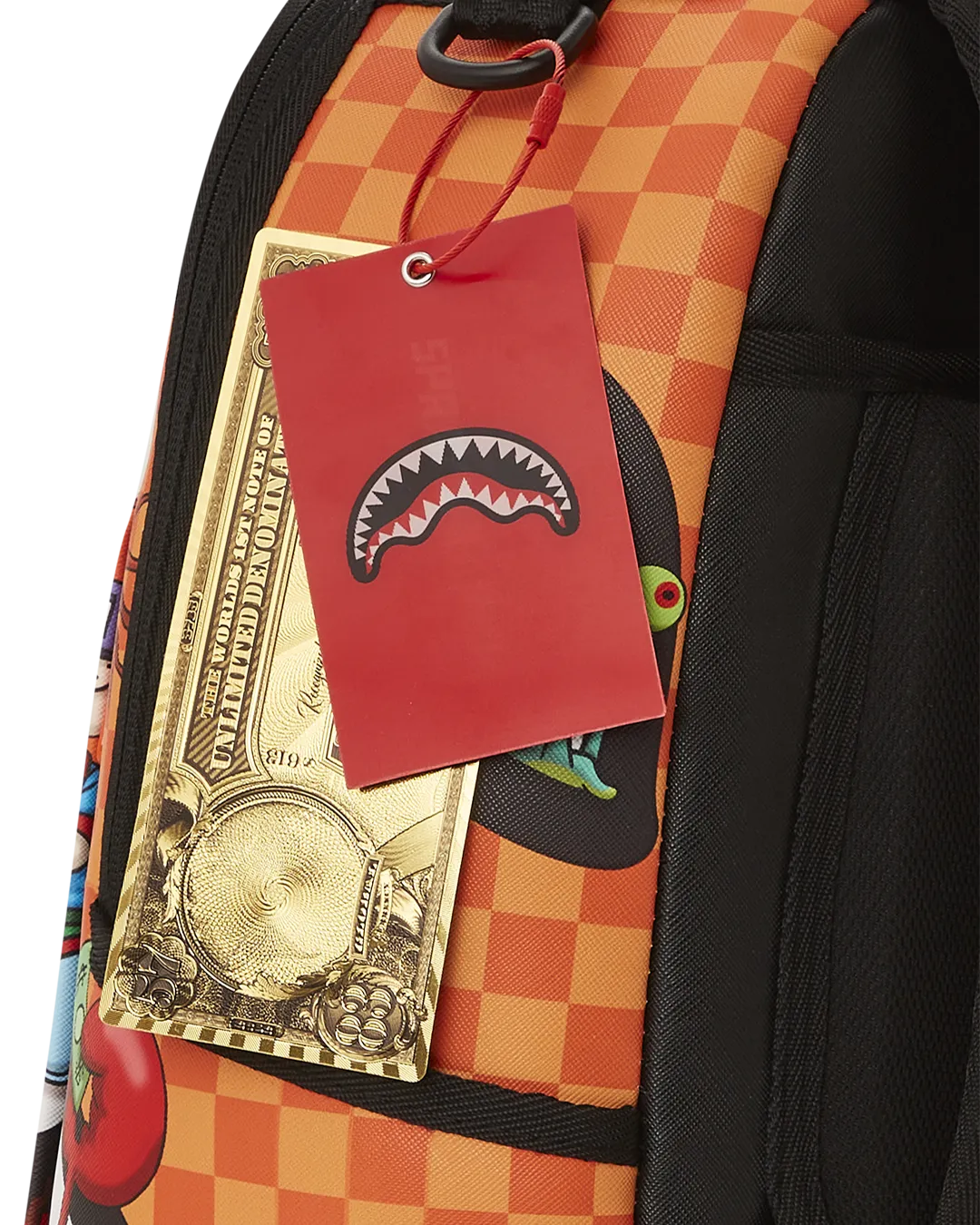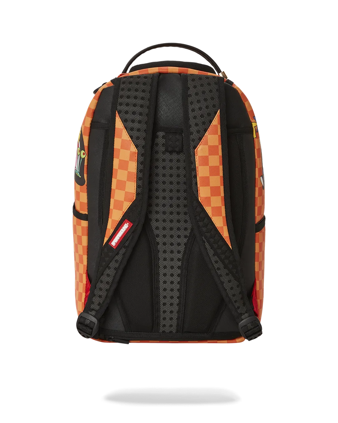 Dimensions: 18″ x 6″ x 11.5″ ? Front zipper pocket ? Side pockets ? Zippered Stash pocket ? Separate velour sunglass compartment ? Ergonomic mesh back padding ? Adjustable Straps for custom sizing ? Gold zippers with metal hardware ? Metal “Sprayground Authentic” badge ? Slide through back sleeve connects to carry-on luggage to free your hands