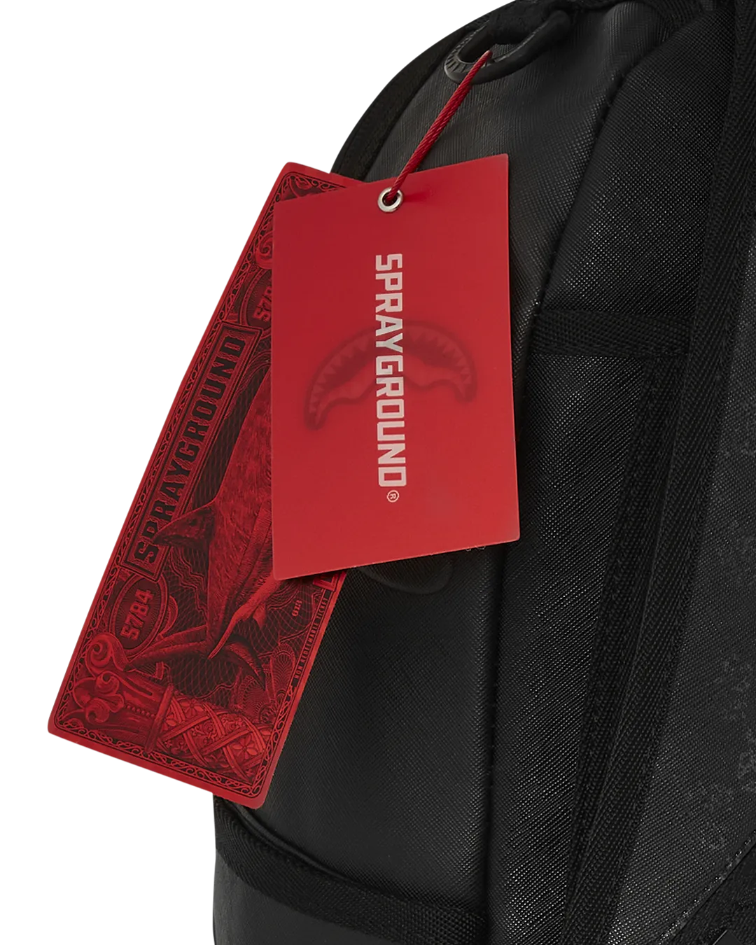 Dimensions: 18″ x 6″ x 11.5″ ? Front zipper pocket ? Side pockets ? Zippered Stash pocket ? Separate velour sunglass compartment ? Ergonomic mesh back padding ? Adjustable Straps for custom sizing ? Gold zippers with metal hardware ? Metal “Sprayground Authentic” badge ? Slide through back sleeve connects to carry-on luggage to free your hands