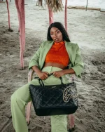 NOIR QUILT GOLD CHAIN SHARK TOTE