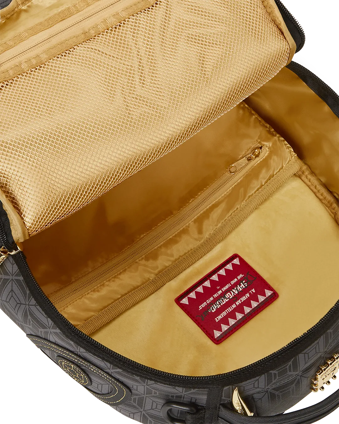 Dimensions: 18″ x 6″ x 11.5″ ? Front zipper pocket ? Side pockets ? Zippered Stash pocket ? Separate velour sunglass compartment ? Ergonomic mesh back padding ? Adjustable Straps for custom sizing ? Gold zippers with metal hardware ? Metal “Sprayground Authentic” badge ? Slide through back sleeve connects to carry-on luggage to free your hands