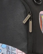 Dimensions: 18″ x 6″ x 11.5″ ? Front zipper pocket ? Side pockets ? Zippered Stash pocket ? Separate velour sunglass compartment ? Ergonomic mesh back padding ? Adjustable Straps for custom sizing ? Gold zippers with metal hardware ? Metal “Sprayground Authentic” badge ? Slide through back sleeve connects to carry-on luggage to free your hands
