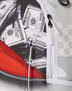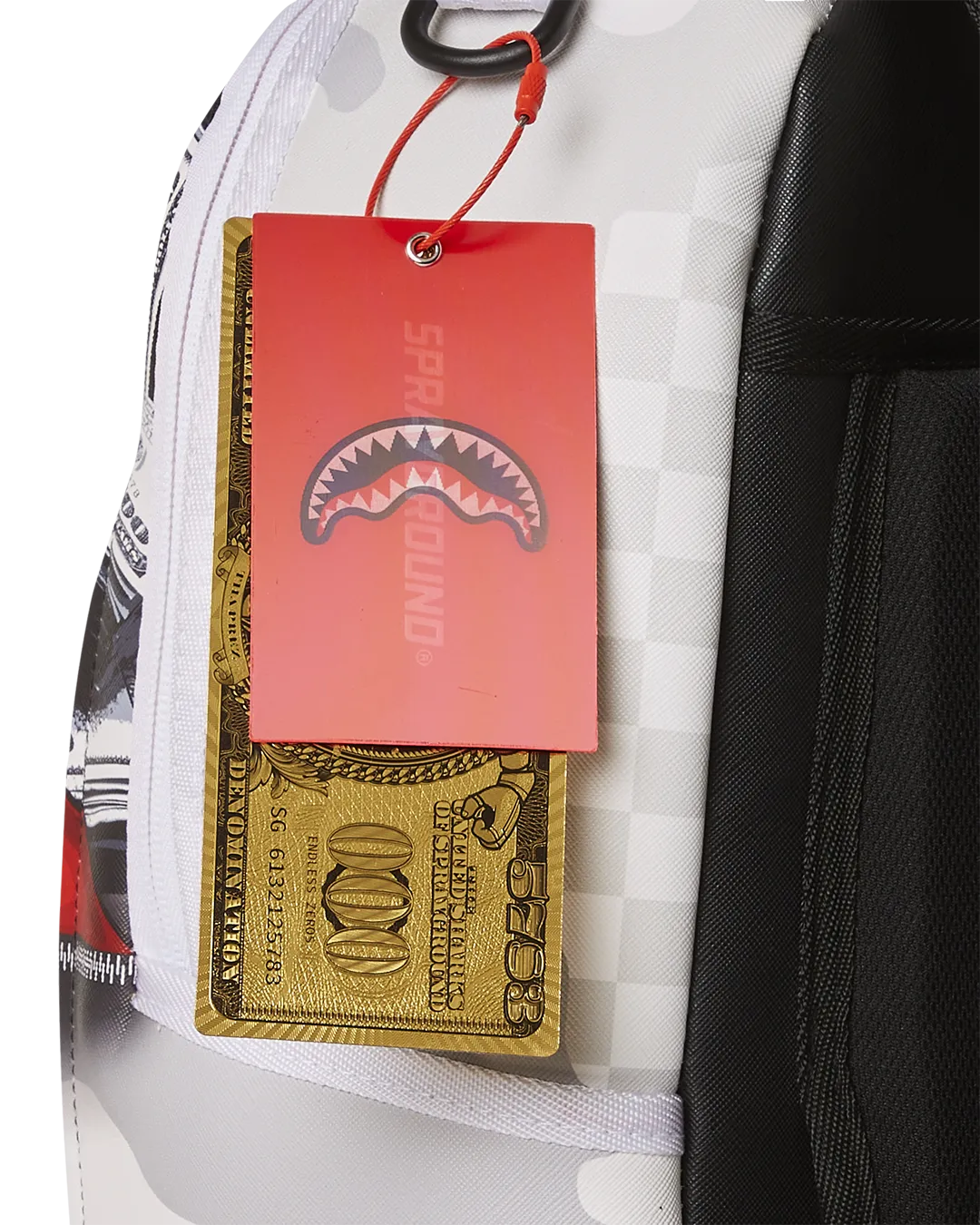 Dimensions: 18″ x 6″ x 11.5″ ? Front zipper pocket ? Side pockets ? Zippered Stash pocket ? Separate velour sunglass compartment ? Ergonomic mesh back padding ? Adjustable Straps for custom sizing ? Gold zippers with metal hardware ? Metal “Sprayground Authentic” badge ? Slide through back sleeve connects to carry-on luggage to free your hands