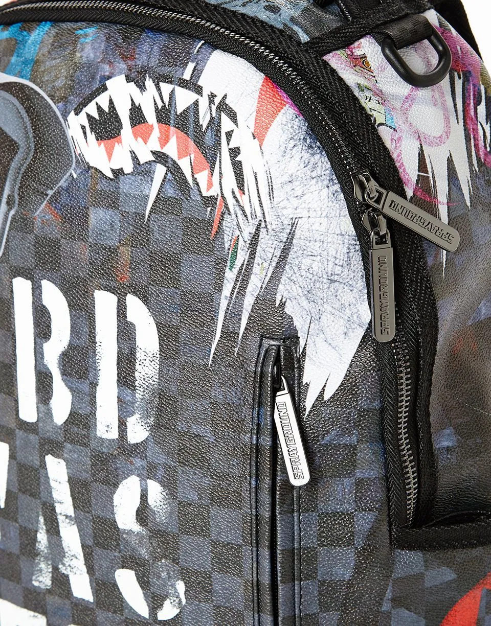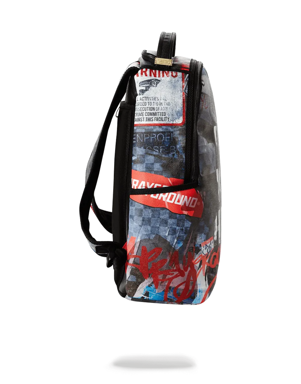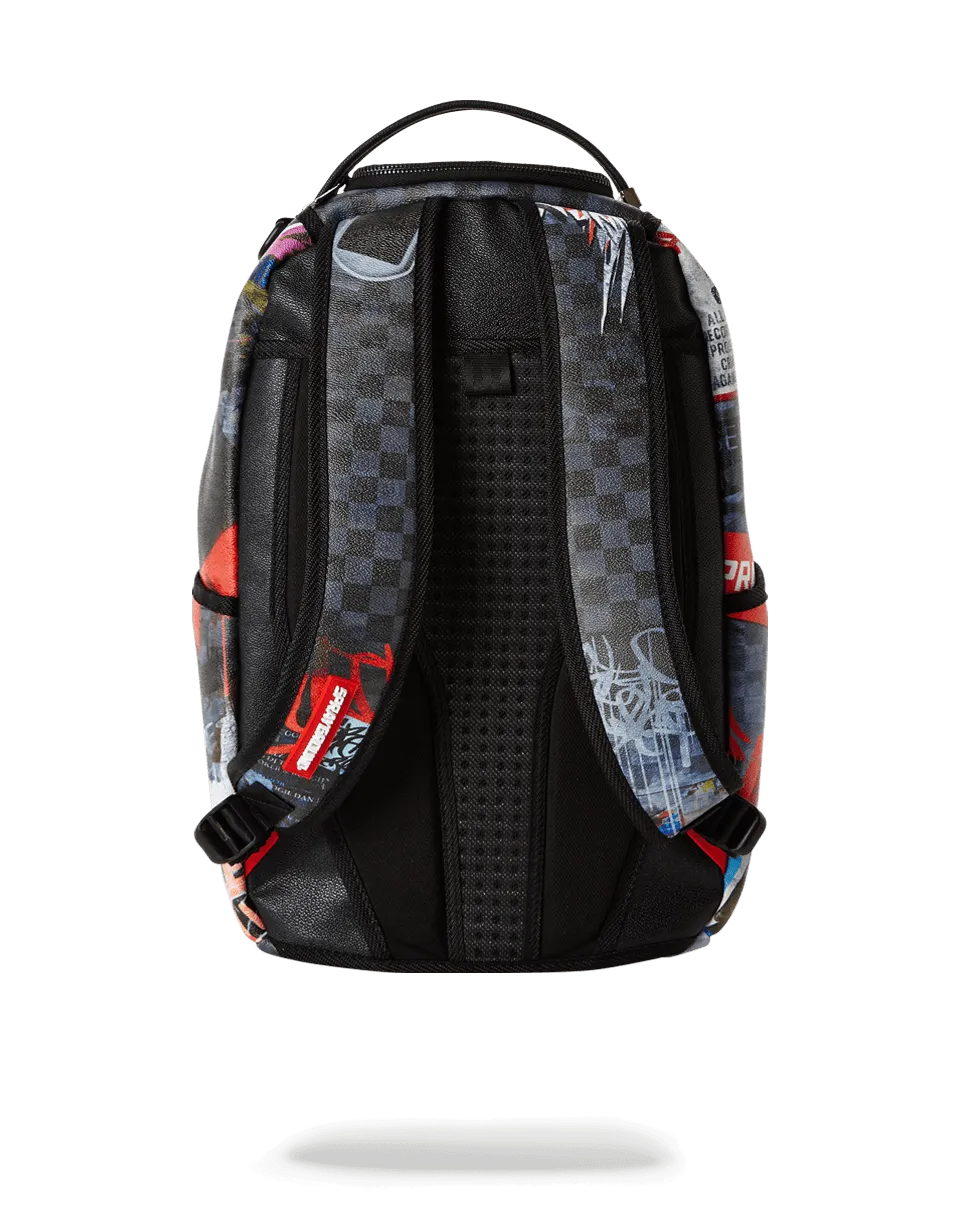 Dimensions: 18″ x 6″ x 11.5″ ?Vegan Leather??Front zipper pocket ? Side pockets ? Zippered Stash pocket ? Ergonomic mesh back padding ? Adjustable Straps for custom sizing ? Nylon Zippers with Metal Hardware ??Rubber?”Sprayground Authentic” badge ? Slide through back sleeve connects to Carry on luggage to free your hands