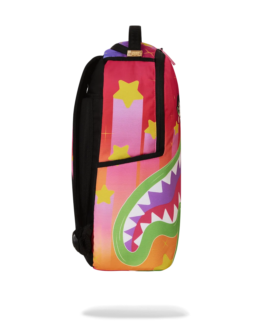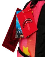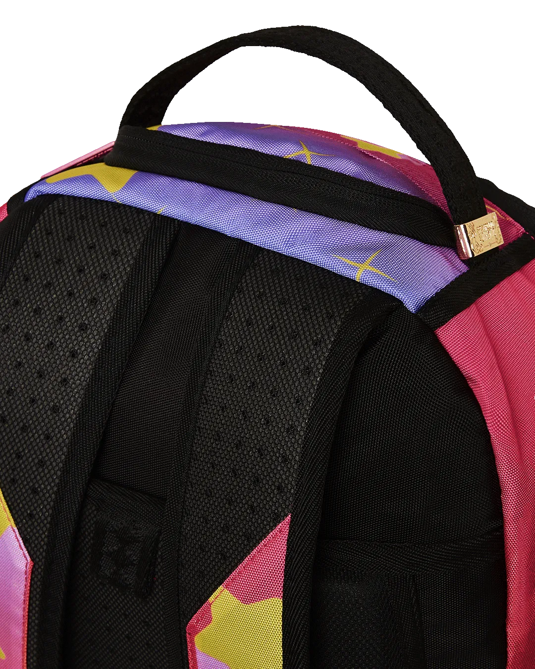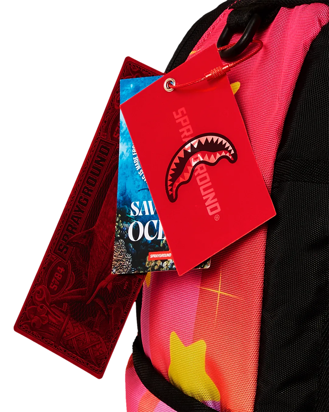 Dimensions: 18″ x 6″ x 11.5″ ? Front zipper pocket ? Side pockets ? Zippered Stash pocket ? Separate velour sunglass compartment ? Ergonomic mesh back padding ? Adjustable Straps for custom sizing ? Gold zippers with metal hardware ? Metal “Sprayground Authentic” badge ? Slide through back sleeve connects to carry-on luggage to free your hands