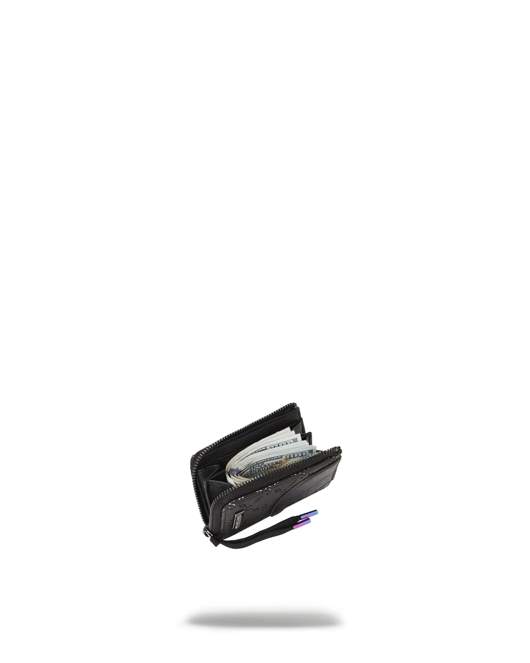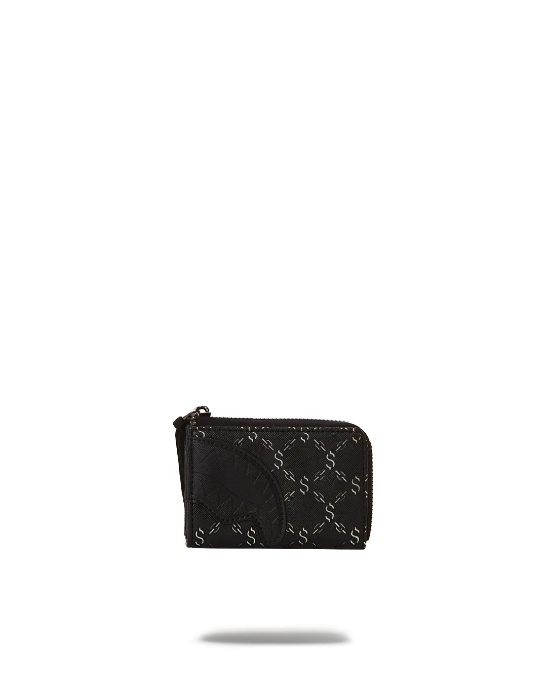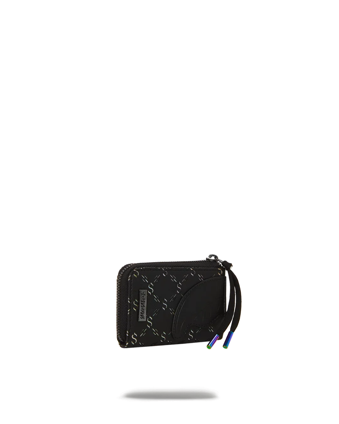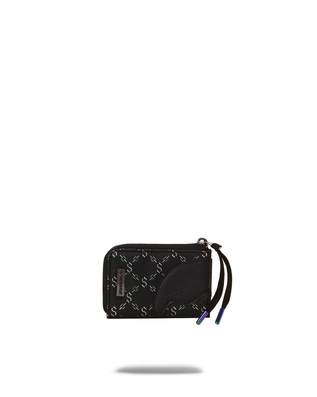 100% PVC with exclusive laser cut money logo pattern applied over metallic iridescent ?fabric to give a touch of shimmer to the fabric