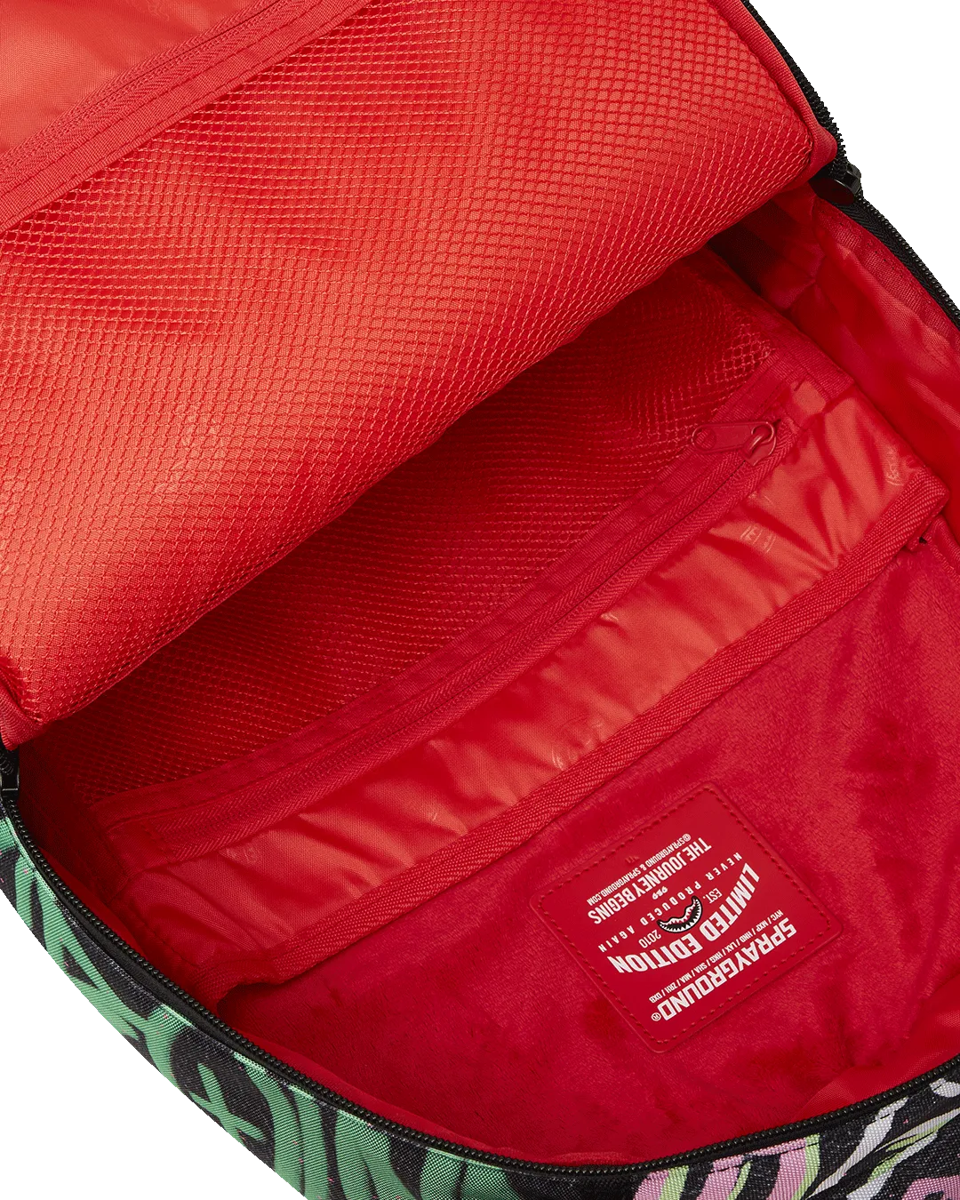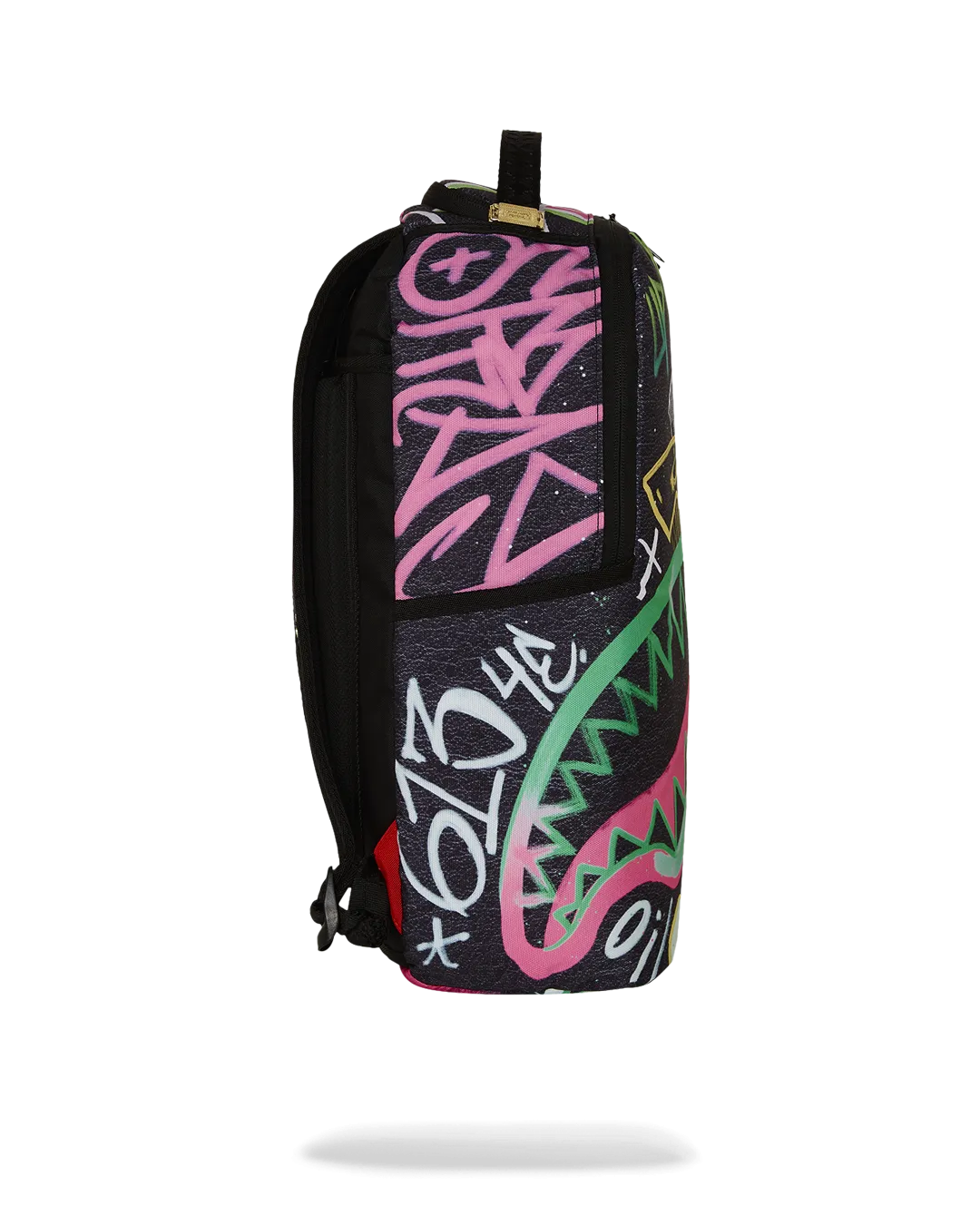 Dimensions: 18″ x 6″ x 11.5″ ? Front zipper pocket ? Side pockets ? Zippered Stash pocket ? Separate velour sunglass compartment ? Ergonomic mesh back padding ? Adjustable Straps for custom sizing ? Gold zippers with metal hardware ? Metal “Sprayground Authentic” badge ? Slide through back sleeve connects to carry-on luggage to free your hands