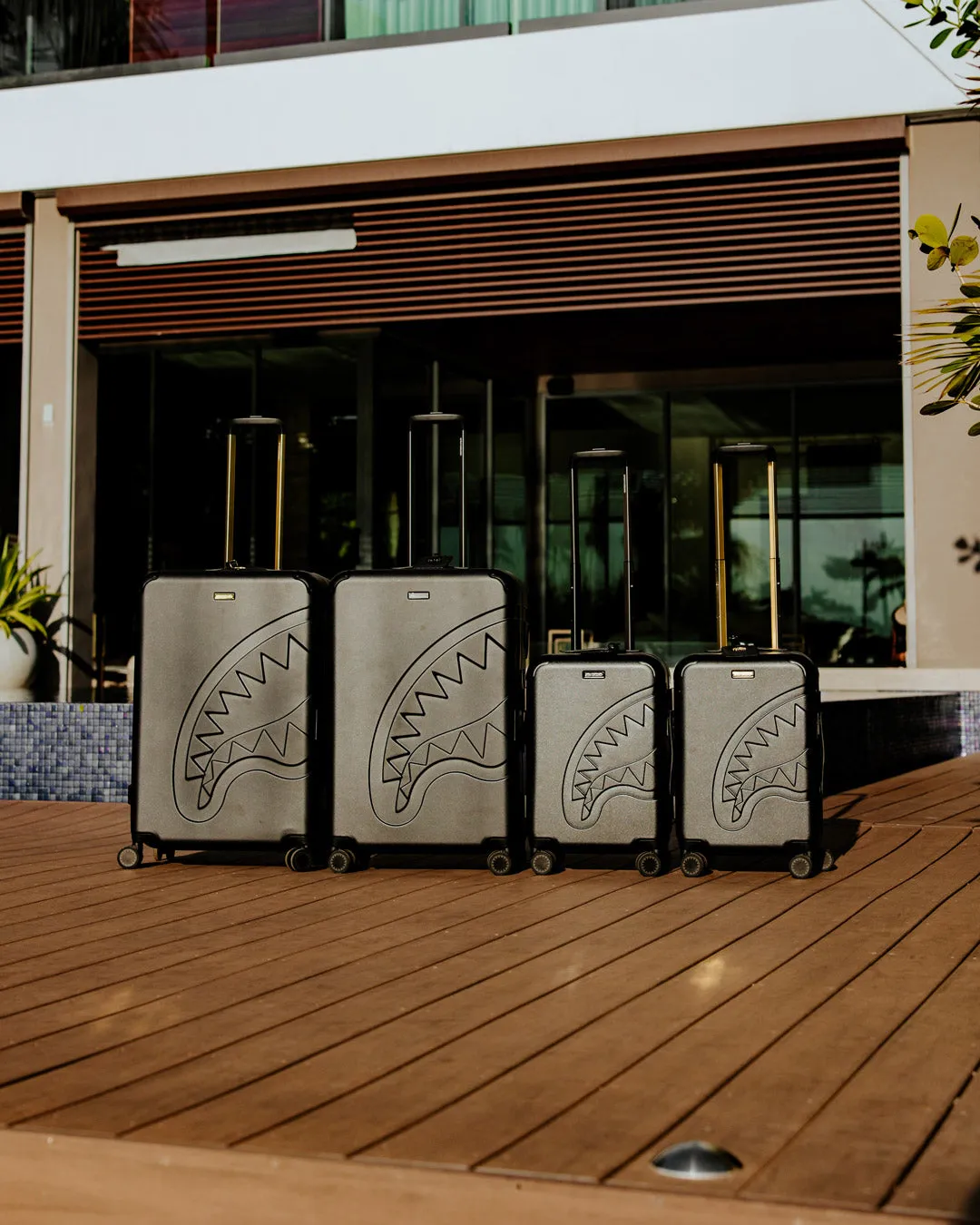REALITY CHECK SHARKITECTURE CARRY-ON JETBLACK LUGGAGE (GOLD HARDWARE)