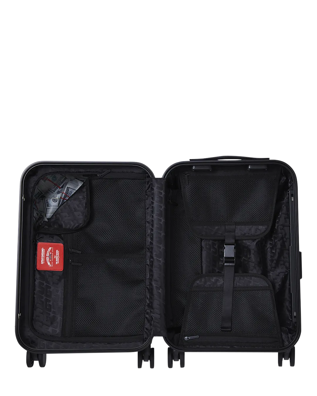 Sprayground products are rigorously tested to ensure that the travel products you trust meet stringent standards. Consequently, if a problem occurs with this Sprayground luggage and the problem is caused by manufacturing defects in material and workmanship, Sprayground will, in its discretion, either fix or replace the luggage in accordance with the warranty terms and conditions stated herein. The warranty provided for herein applies only to the first purchaser or gift recipient of the luggage for a period of one year starting from the date this luggage was purchased. This warranty covers only manufacturing defects and does not cover any damage caused by misuse such as transportation of unusual items, neglect, accidents, abrasion, exposure to extreme temperatures, solvents, acids, water, normal wear and tear or transport damage. The warranty provided herein is limited to the value of the Product. Manufacturing specifications are subject to change without notice. Product is made in limited edition production and if product needs to be replaced and it is not available anymore, then either a store credit will be given if the product can not be replaced.