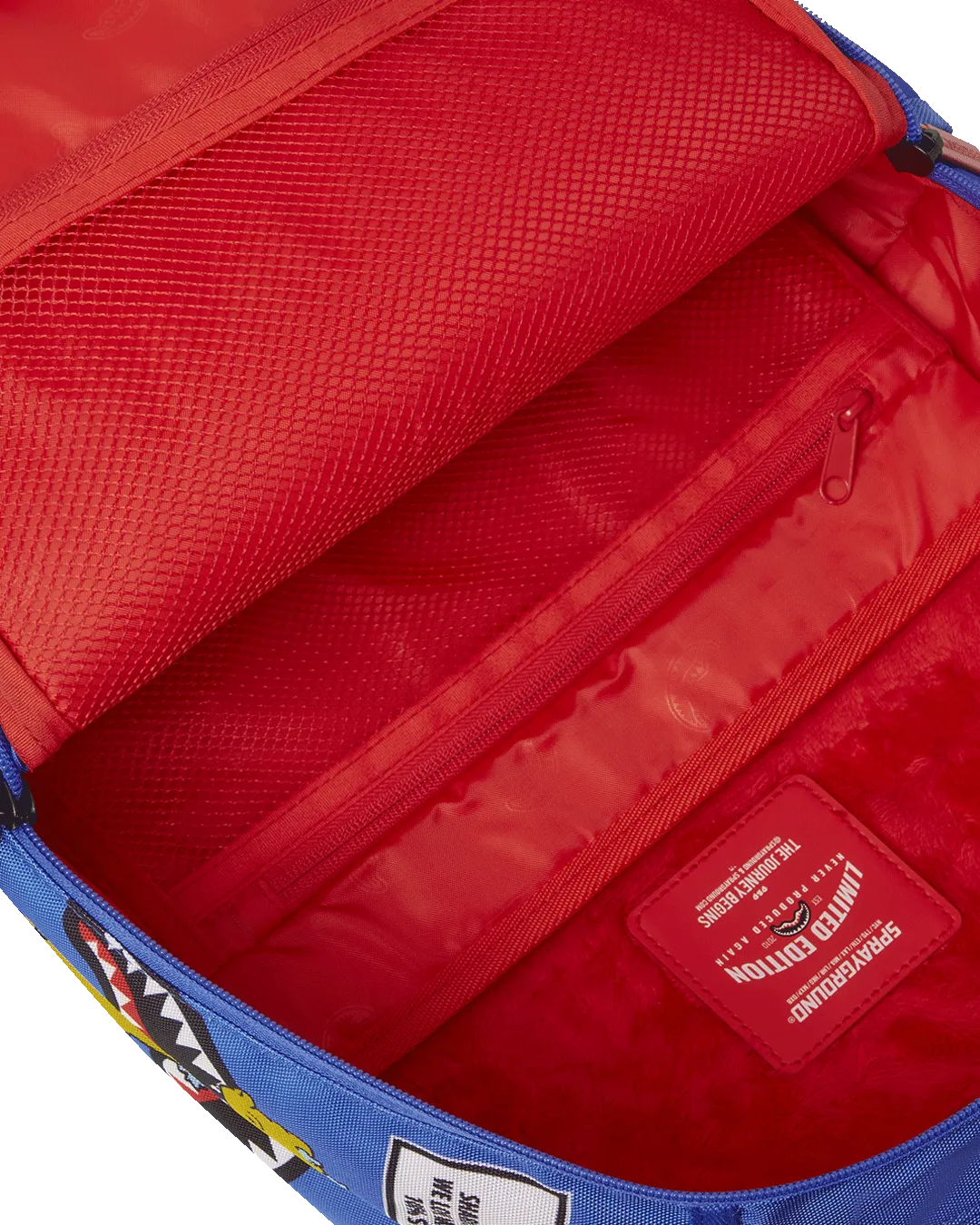 Dimensions: 18″ x 6″ x 11.5″ ? Front zipper pocket ? Side pockets ? Zippered Stash pocket ? Separate velour sunglass compartment ? Ergonomic mesh back padding ? Adjustable Straps for custom sizing ? Gold zippers with metal hardware ? Metal “Sprayground Authentic” badge ? Slide through back sleeve connects to carry-on luggage to free your hands