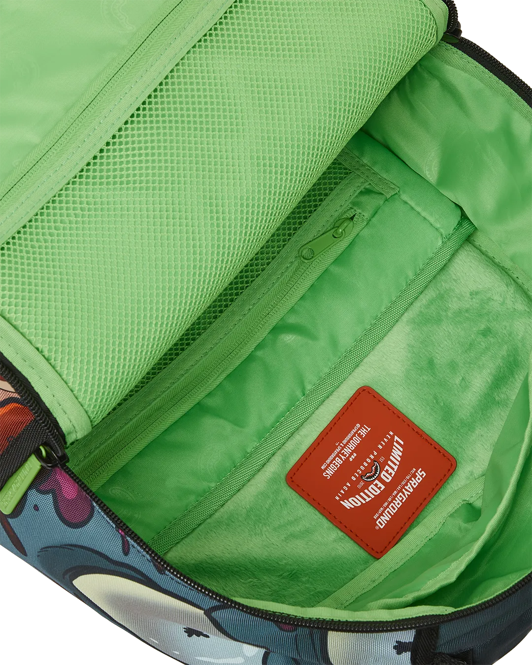 Dimensions: 18″ x 6″ x 11.5″ ? Front zipper pocket ? Side pockets ? Zippered Stash pocket ? Separate velour sunglass compartment ? Ergonomic mesh back padding ? Adjustable Straps for custom sizing ? Green zippers with metal hardware ? Metal “Sprayground Authentic” badge ? Slide through back sleeve connects to carry on luggage to free your hands