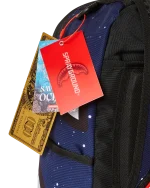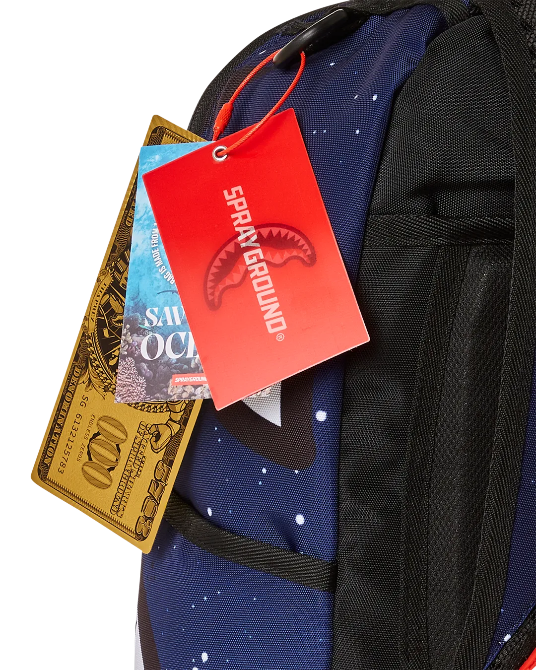 Dimensions: 18″ x 6″ x 11.5″ ? Front zipper pocket ? Side pockets ? Zippered Stash pocket ? Separate velour sunglass compartment ? Ergonomic mesh back padding ? Adjustable Straps for custom sizing ? Gold zippers with metal hardware ? Metal “Sprayground Authentic” badge ? Slide through back sleeve connects to carry-on luggage to free your hands
