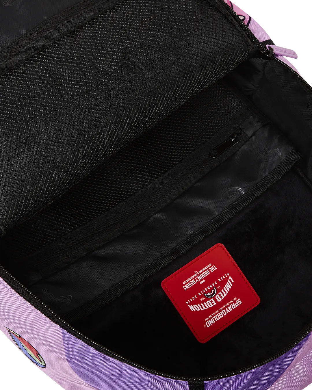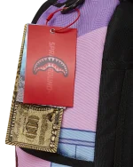 Dimensions: 18″ x 6″ x 11.5″ ? Front zipper pocket ? Side pockets ? Zippered Stash pocket ? Separate velour sunglass compartment ? Ergonomic mesh back padding ? Adjustable Straps for custom sizing ? Gold zippers with metal hardware ? Metal “Sprayground Authentic” badge ? Slide through back sleeve connects to carry-on luggage to free your hands