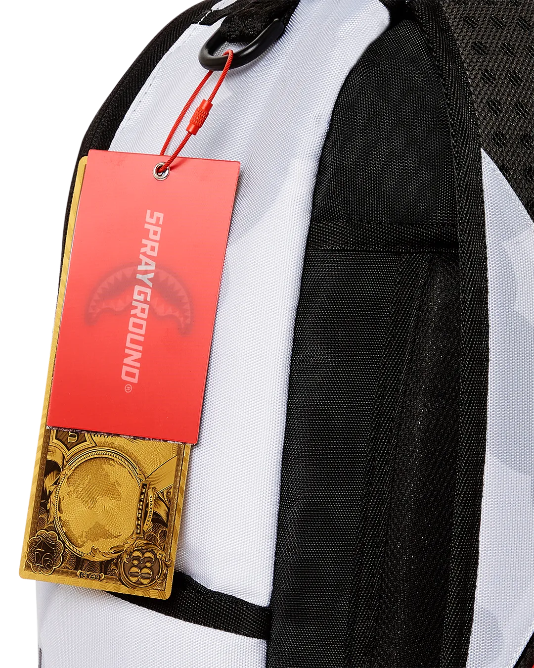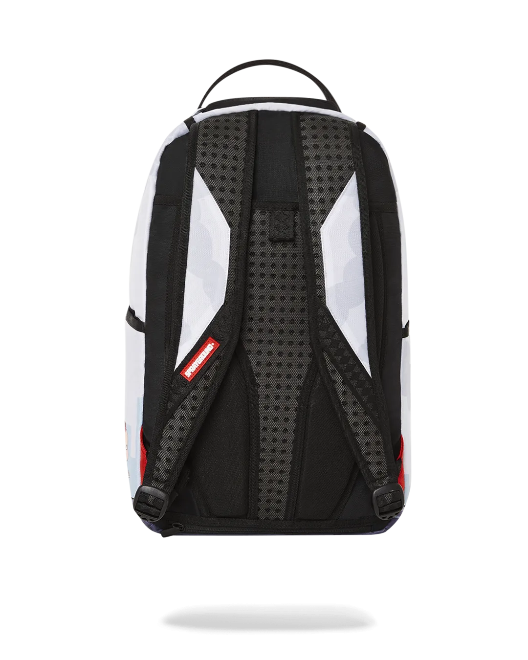 Dimensions: 18″ x 6″ x 11.5″ ? Front zipper pocket ? Side pockets ? Zippered Stash pocket ? Separate velour sunglass compartment ? Ergonomic mesh back padding ? Adjustable Straps for custom sizing ? Gold zippers with metal hardware ? Metal “Sprayground Authentic” badge ? Slide through back sleeve connects to carry-on luggage to free your hands