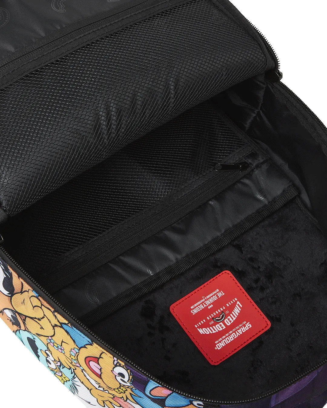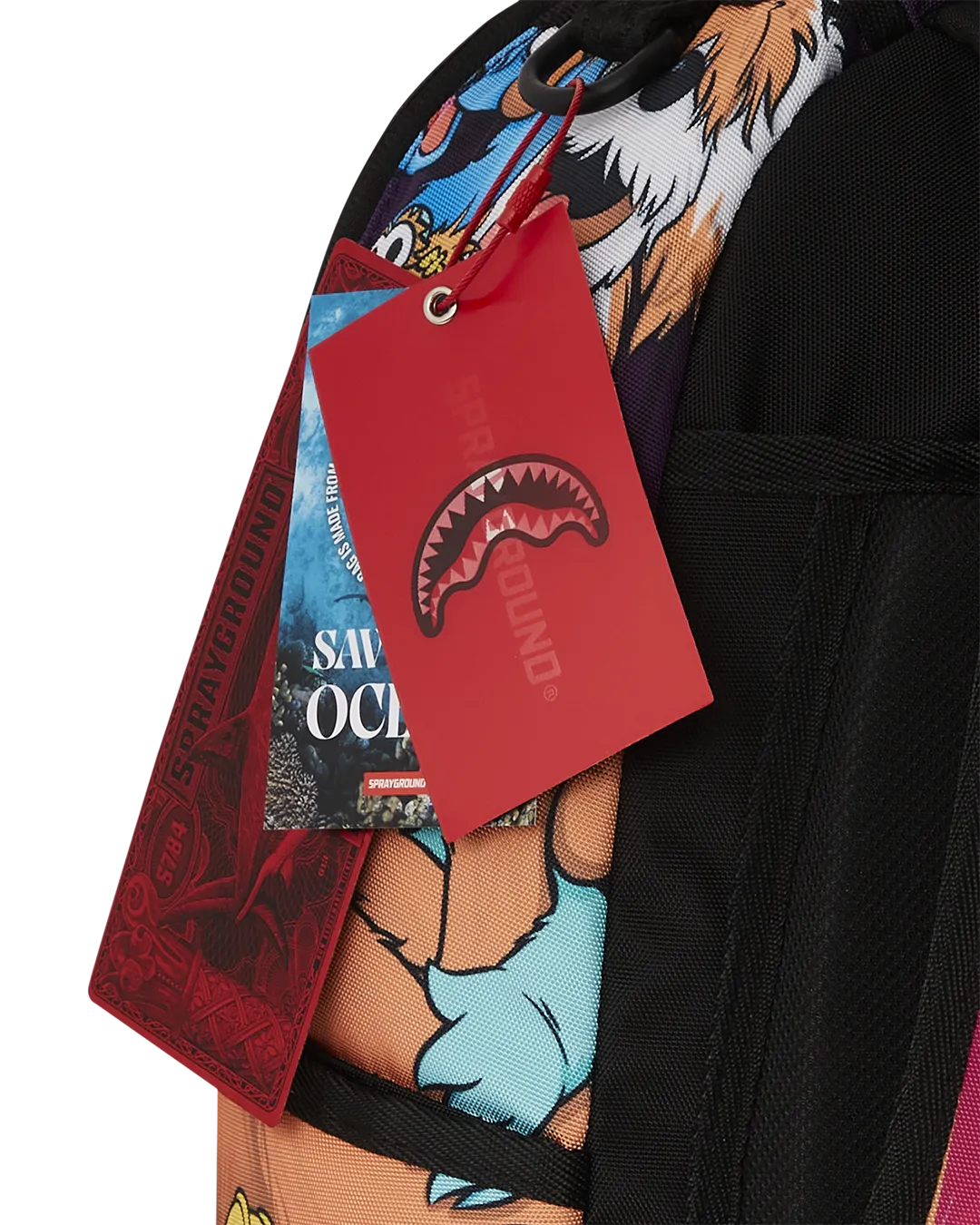 Dimensions: 18″ x 6″ x 11.5″ ? Front zipper pocket ? Side pockets ? Zippered Stash pocket ? Separate velour sunglass compartment ? Ergonomic mesh back padding ? Adjustable Straps for custom sizing ? Gold zippers with metal hardware ? Metal “Sprayground Authentic” badge ? Slide through back sleeve connects to carry-on luggage to free your hands