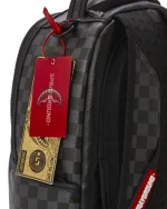 Dimensions: 18″ x 6″ x 11.5″ ? Front zipper pocket ? Side pockets ? Zippered Stash pocket ? Separate velour sunglass compartment ? Ergonomic mesh back padding ? Adjustable Straps for custom sizing ? Gold zippers with metal hardware ? Metal “Sprayground Authentic” badge ? Slide through back sleeve connects to carry-on luggage to free your hands