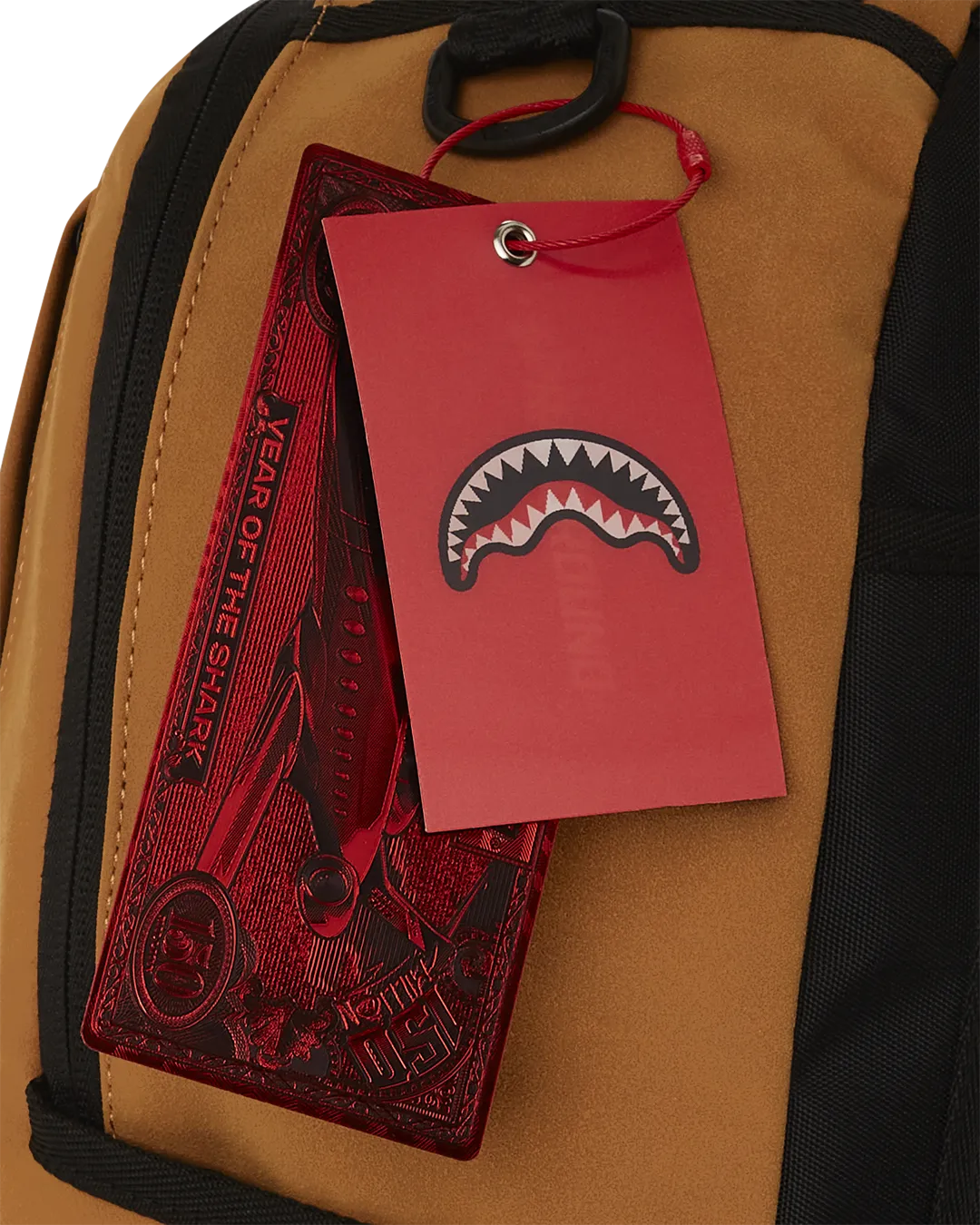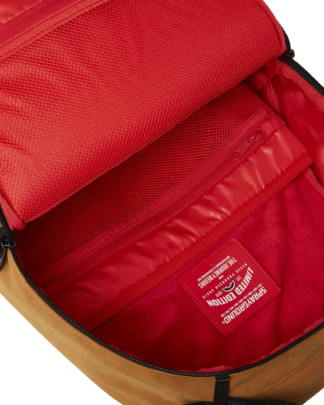 Dimensions: 18″ x 6″ x 11.5″ ? Front zipper pocket ? Side pockets ? Zippered Stash pocket ? Separate velour sunglass compartment ? Ergonomic mesh back padding ? Adjustable Straps for custom sizing ? Gold zippers with metal hardware ? Metal “Sprayground Authentic” badge ? Slide through back sleeve connects to carry-on luggage to free your hands
