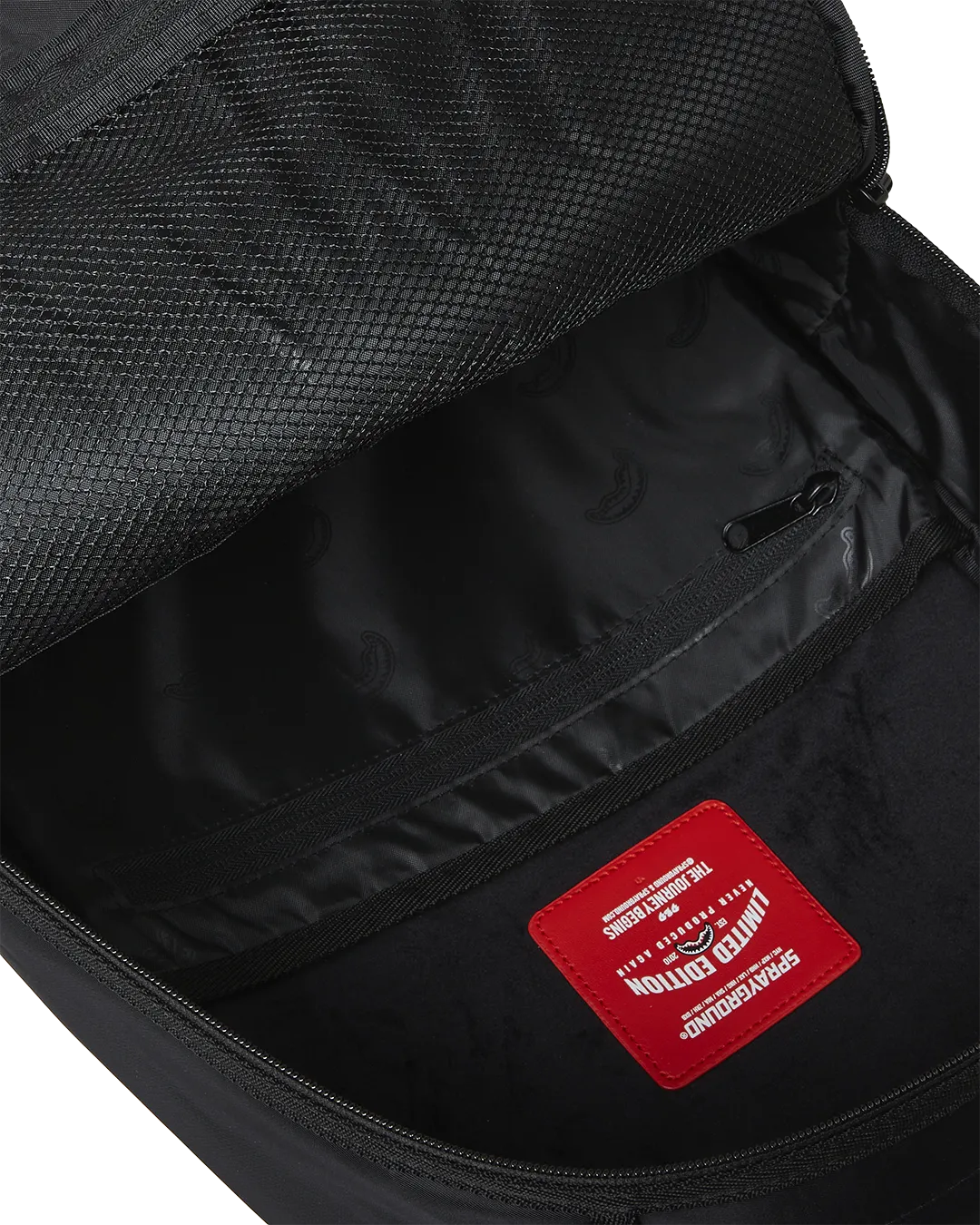 Dimensions: 18″ x 6″ x 11.5″ ? Front zipper pocket ? Side pockets ? Zippered Stash pocket ? Separate velour sunglass compartment ? Ergonomic mesh back padding ? Adjustable Straps for custom sizing ? Gold zippers with metal hardware ? Metal “Sprayground Authentic” badge ? Slide through back sleeve connects to carry-on luggage to free your hands