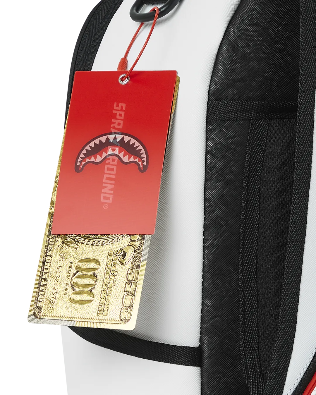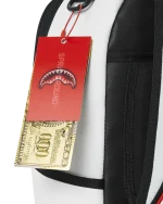 Dimensions: 18″ x 6″ x 11.5″ ? Front zipper pocket ? Side pockets ? Zippered Stash pocket ? Separate velour sunglass compartment ? Ergonomic mesh back padding ? Adjustable Straps for custom sizing ? Gold zippers with metal hardware ? Metal “Sprayground Authentic” badge ? Slide through back sleeve connects to carry-on luggage to free your hands