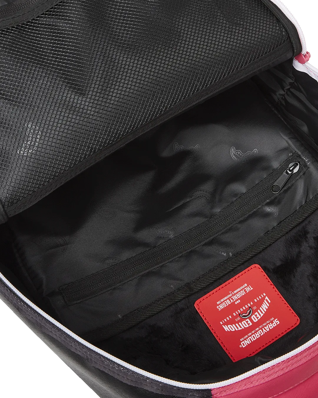 Dimensions: 18″ x 6″ x 11.5″ ? Front zipper pocket ? Side pockets ? Zippered Stash pocket ? Separate velour sunglass compartment ? Ergonomic mesh back padding ? Adjustable Straps for custom sizing ? Gold zippers with metal hardware ? Metal “Sprayground Authentic” badge ? Slide through back sleeve connects to carry-on luggage to free your hands