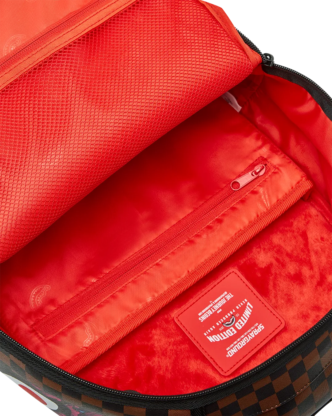Dimensions: 18″ x 6″ x 11.5″ ? Front zipper pocket ? Side pockets ? Zippered Stash pocket ? Separate velour sunglass compartment ? Ergonomic mesh back padding ? Adjustable Straps for custom sizing ? Gold zippers with metal hardware ? Metal “Sprayground Authentic” badge ? Slide through back sleeve connects to carry-on luggage to free your hands