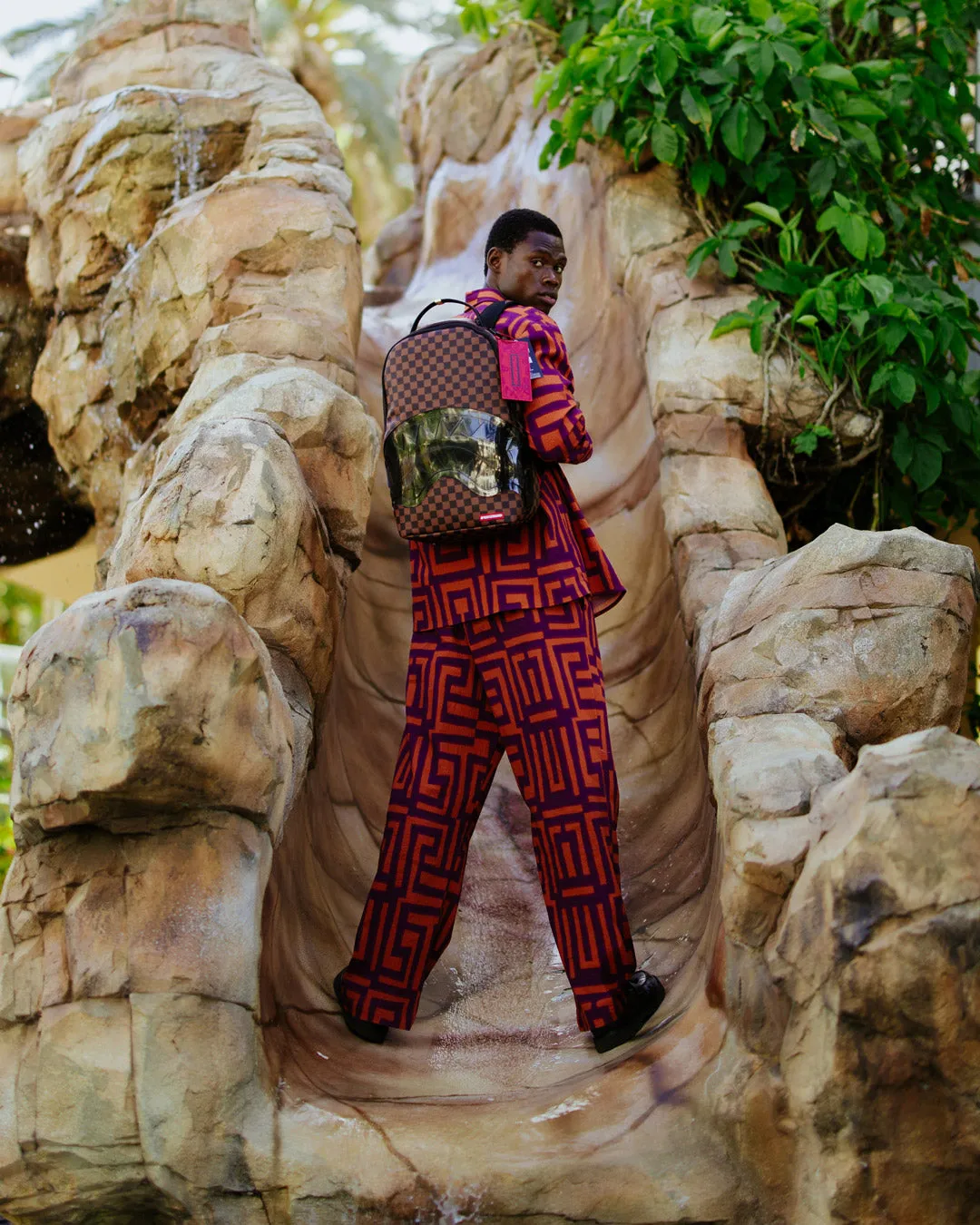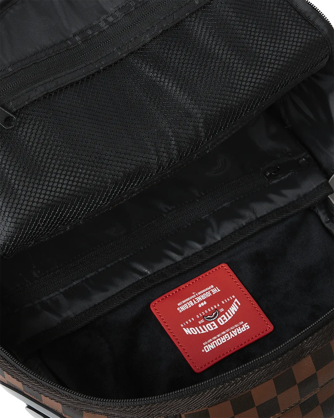 Dimensions: 18″ x 6″ x 11.5″ ? Front zipper pocket ? Side pockets ? Zippered Stash pocket ? Separate velour sunglass compartment ? Ergonomic mesh back padding ? Adjustable Straps for custom sizing ? Gold zippers with metal hardware ? Metal “Sprayground Authentic” badge ? Slide through back sleeve connects to carry-on luggage to free your hands