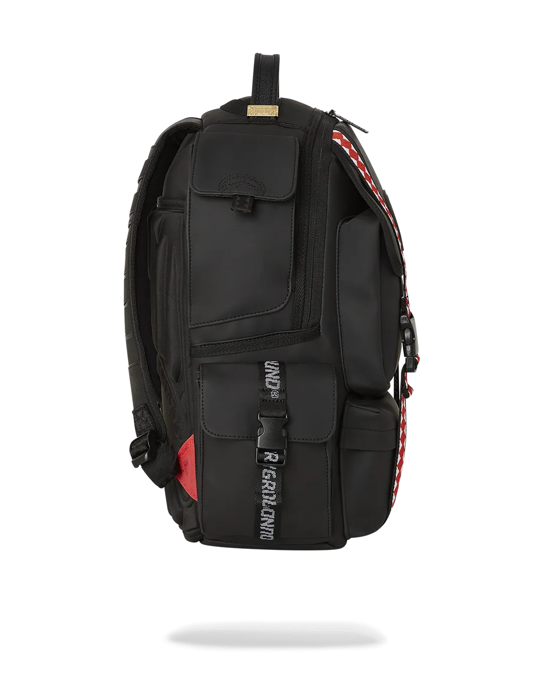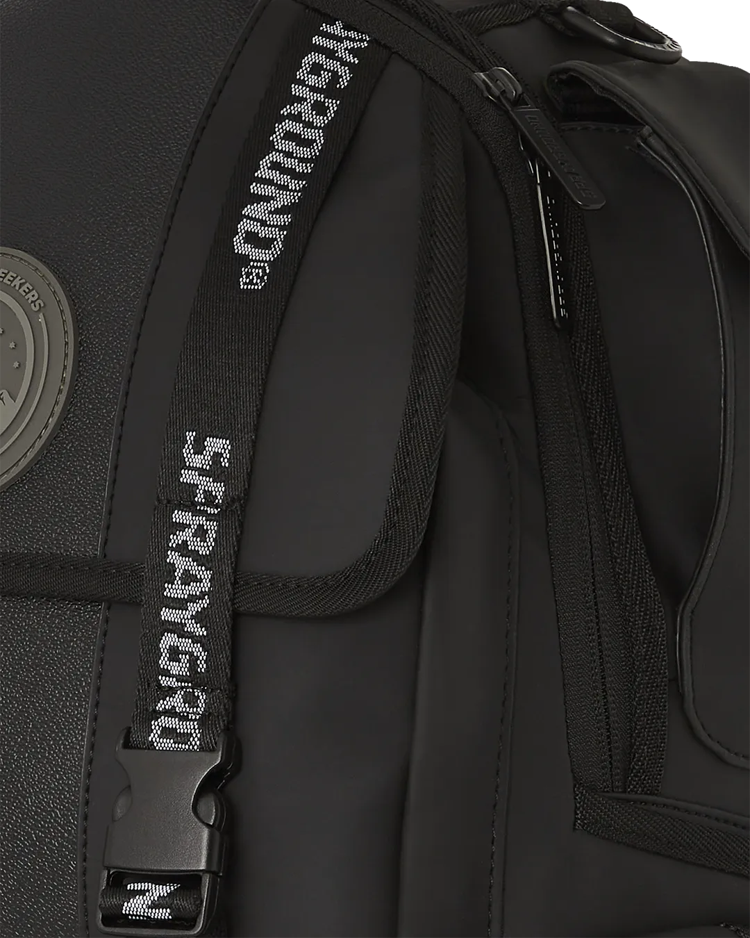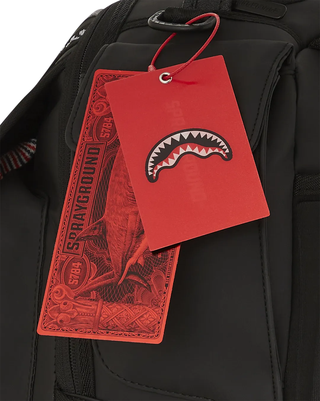 Dimensions: 18″ x 6″ x 11.5″ ? Front zipper pocket ? Side pockets ? Zippered Stash pocket ? Separate velour sunglass compartment ? Ergonomic mesh back padding ? Adjustable Straps for custom sizing ? Gold zippers with metal hardware ? Metal “Sprayground Authentic” badge ? Slide through back sleeve connects to carry-on luggage to free your hands