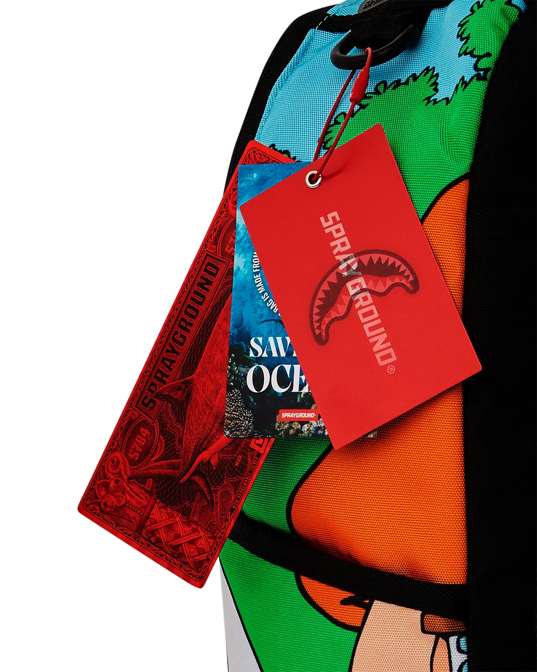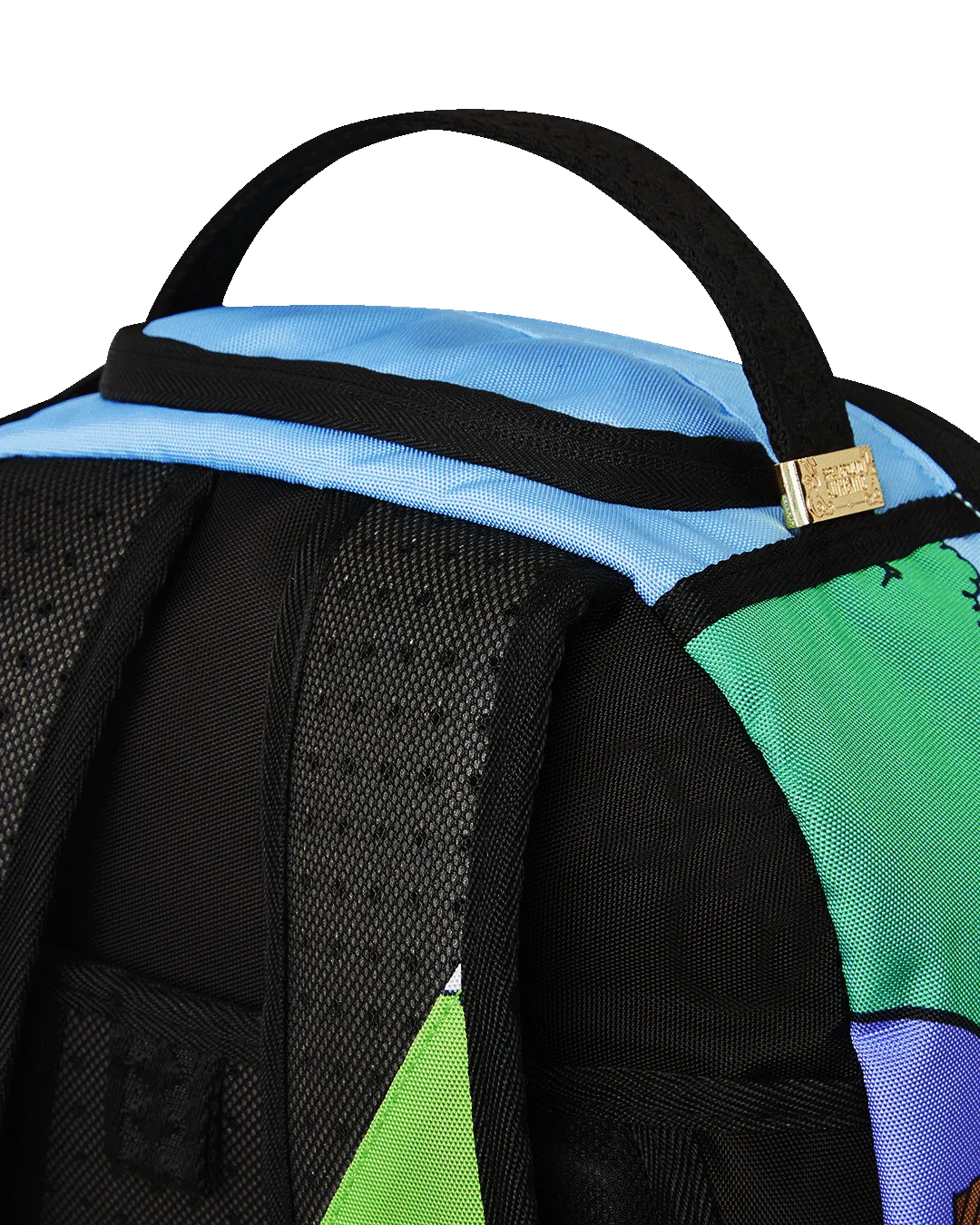 Dimensions: 18″ x 6″ x 11.5″ ? Front zipper pocket ? Side pockets ? Zippered Stash pocket ? Separate velour sunglass compartment ? Ergonomic mesh back padding ? Adjustable Straps for custom sizing ? Gold zippers with metal hardware ? Metal “Sprayground Authentic” badge ? Slide through back sleeve connects to carry-on luggage to free your hands