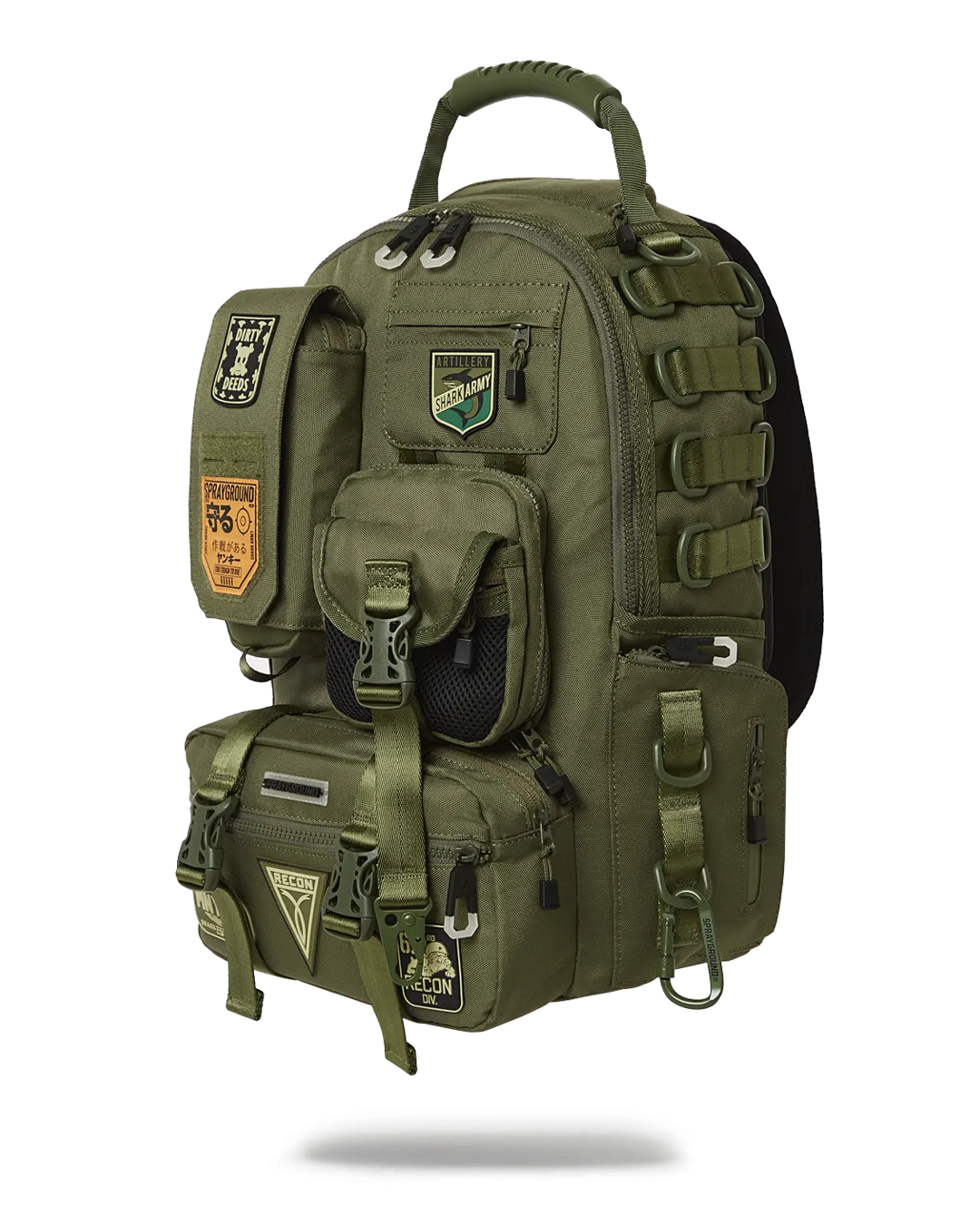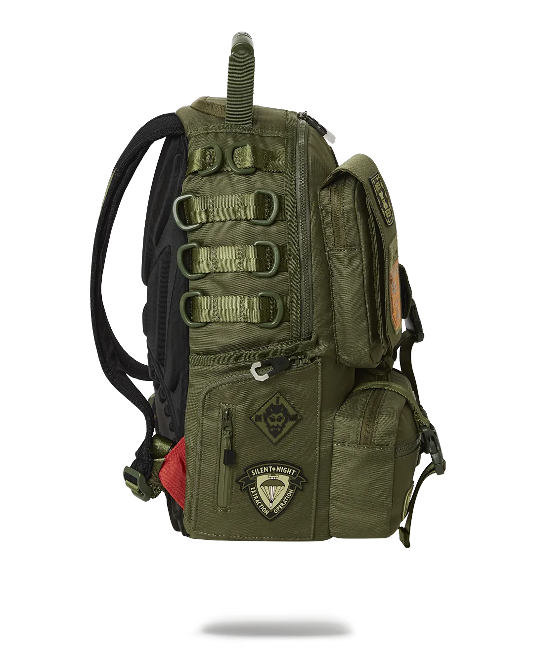 Tactical Details, Multi Functional Pockets, Custom patches and buckles, Durable Nylon Fabric, Custom Shark Back panel