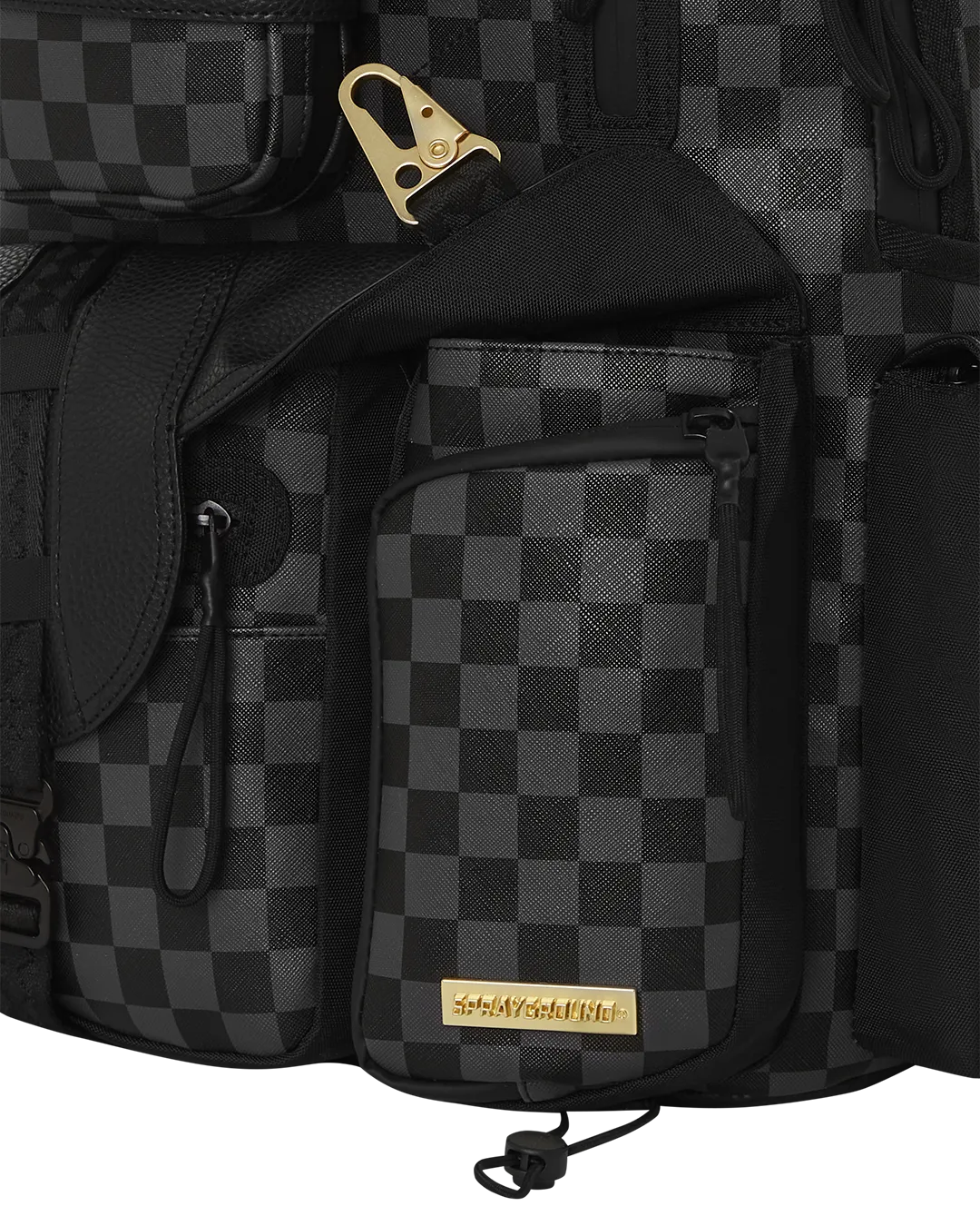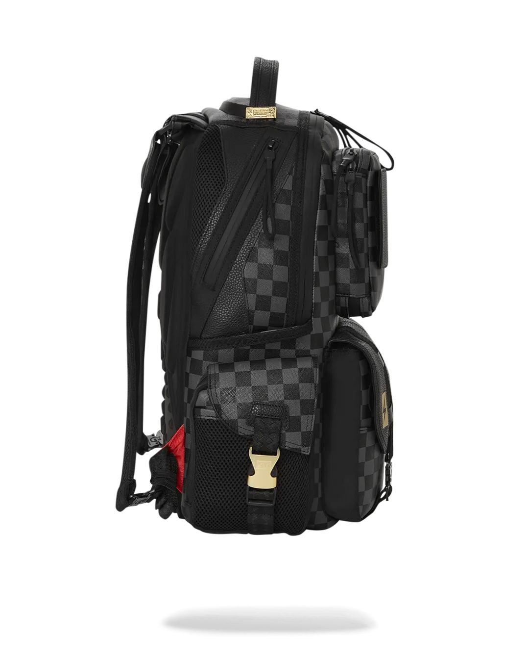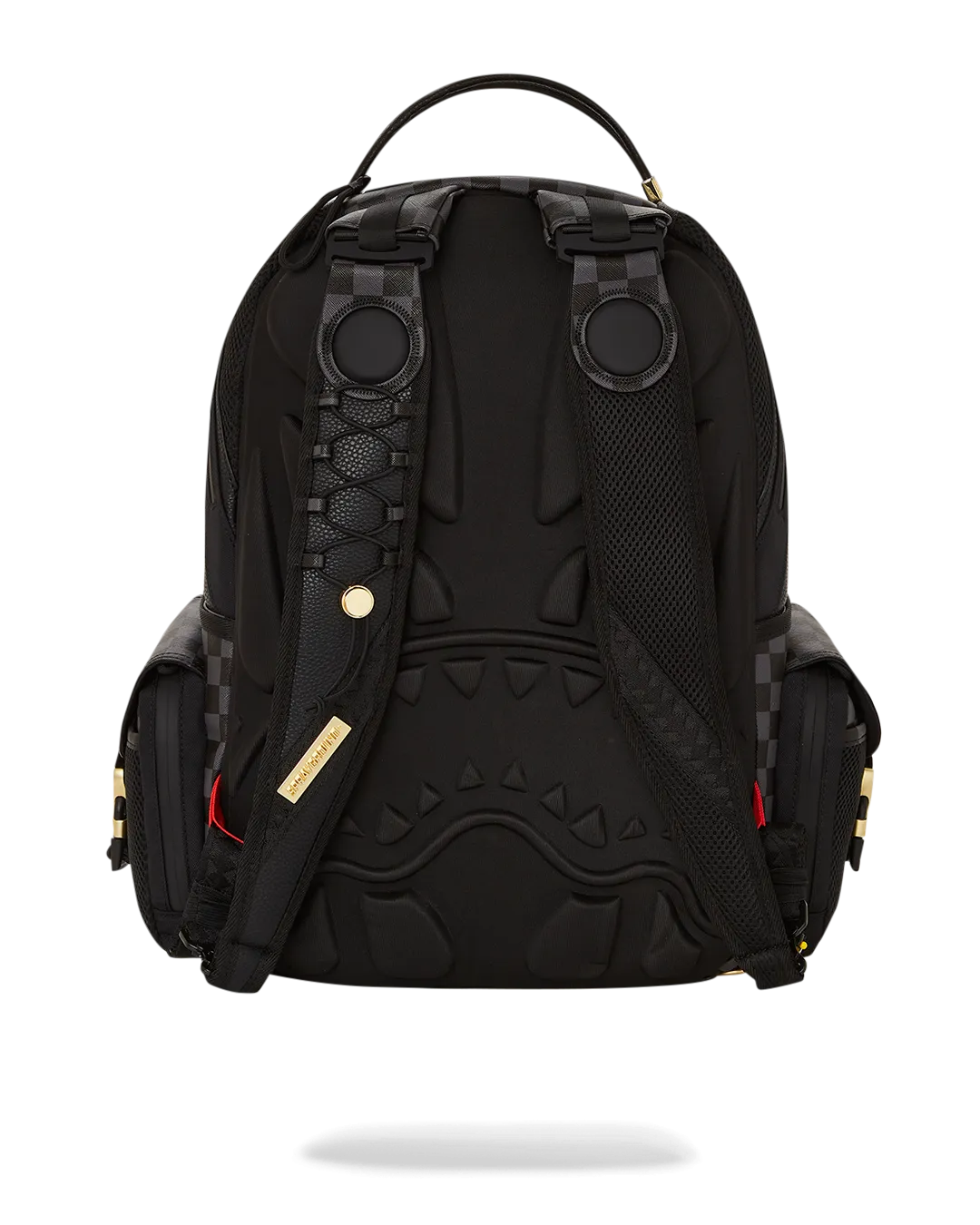 Dimensions: 18″ x 6″ x 11.5″ ? Front zipper pocket ? Side pockets ? Zippered Stash pocket ? Separate velour sunglass compartment ? Ergonomic mesh back padding ? Adjustable Straps for custom sizing ? Gold zippers with metal hardware ? Metal “Sprayground Authentic” badge ? Slide through back sleeve connects to carry-on luggage to free your hands