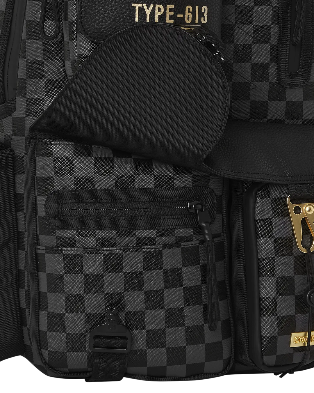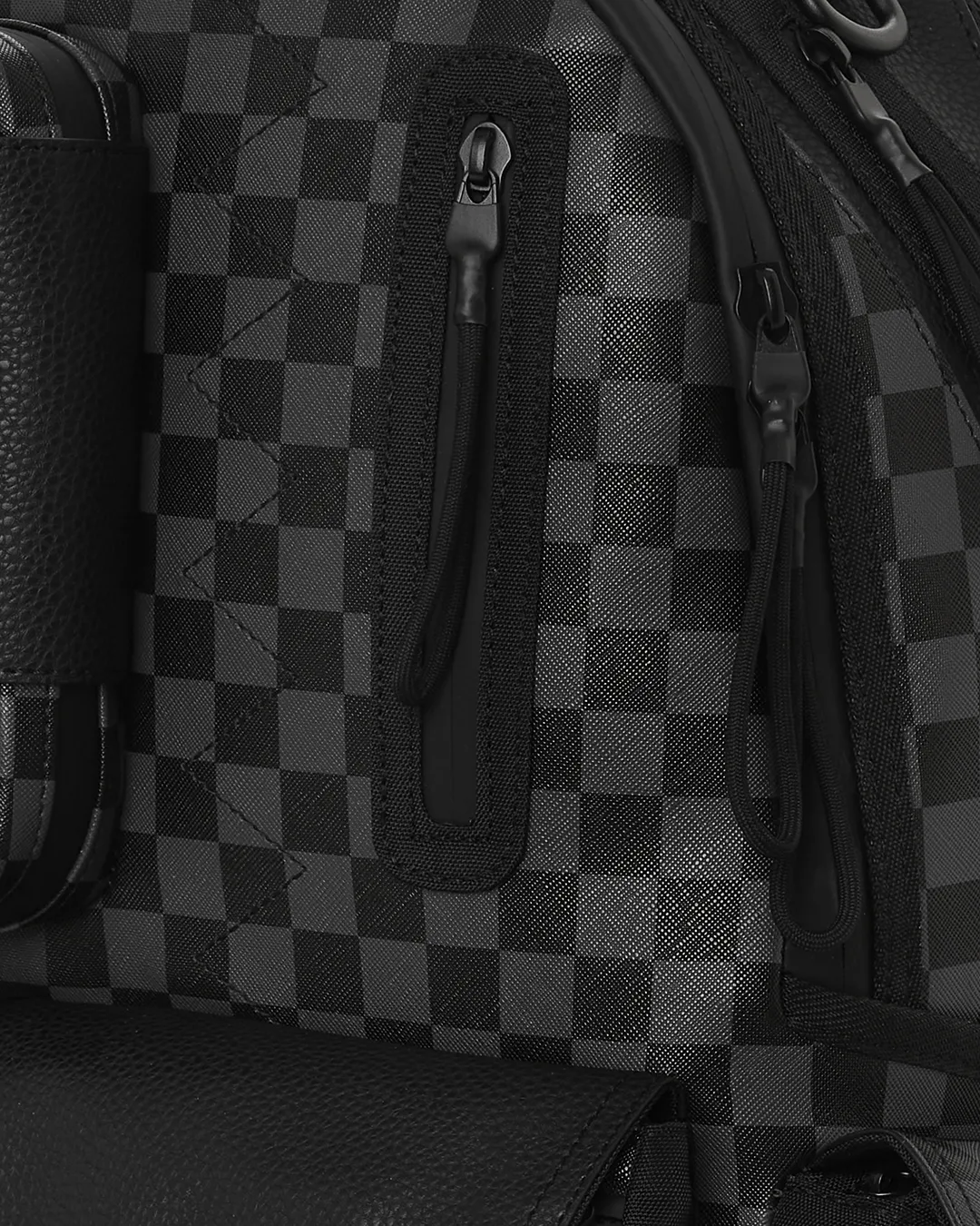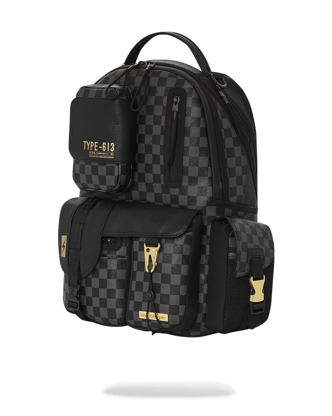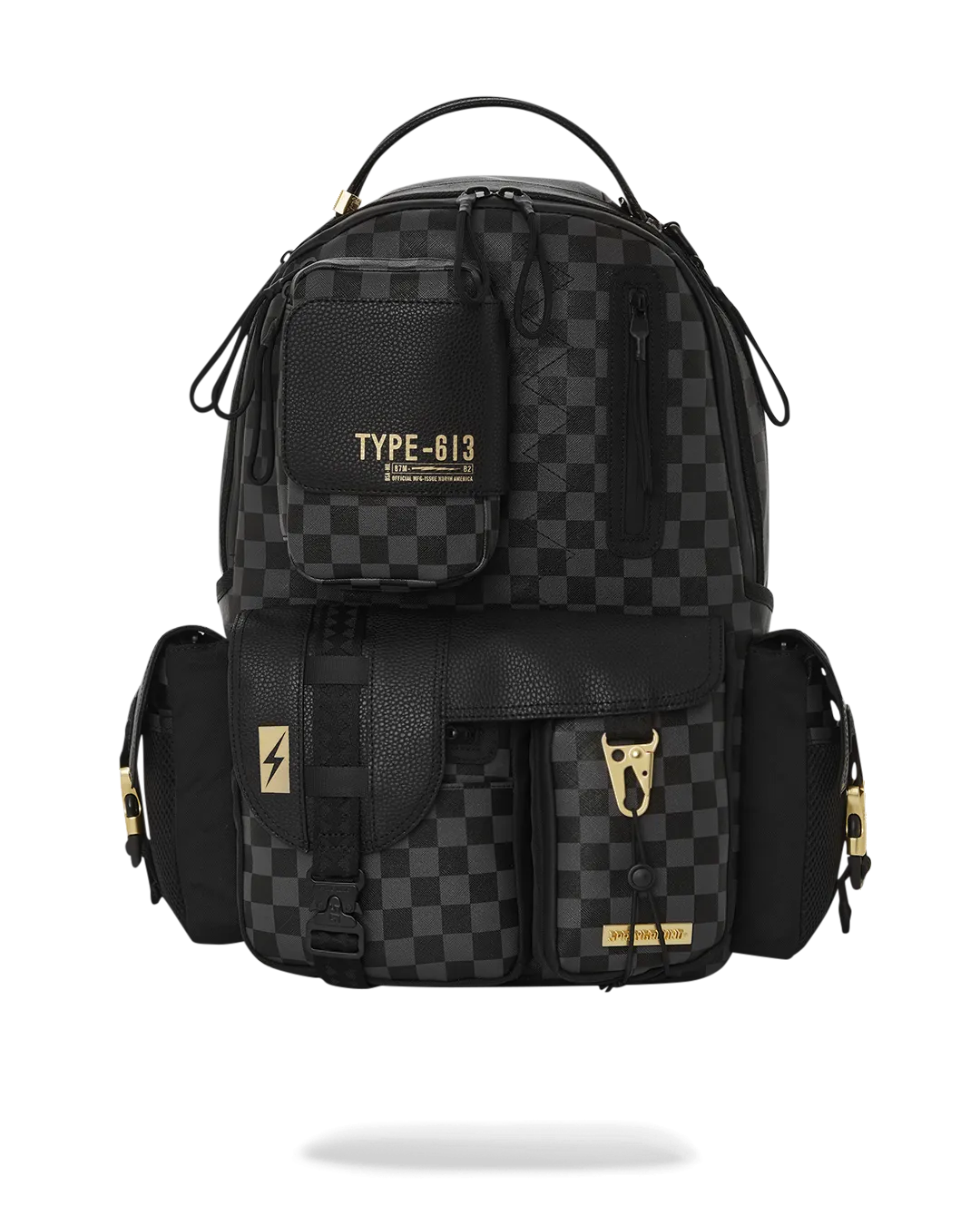 Dimensions: 18″ x 6″ x 11.5″ ? Front zipper pocket ? Side pockets ? Zippered Stash pocket ? Separate velour sunglass compartment ? Ergonomic mesh back padding ? Adjustable Straps for custom sizing ? Gold zippers with metal hardware ? Metal “Sprayground Authentic” badge ? Slide through back sleeve connects to carry-on luggage to free your hands