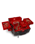 Red velour lining, Tiered shelving, removable tray, ?interior mirror.