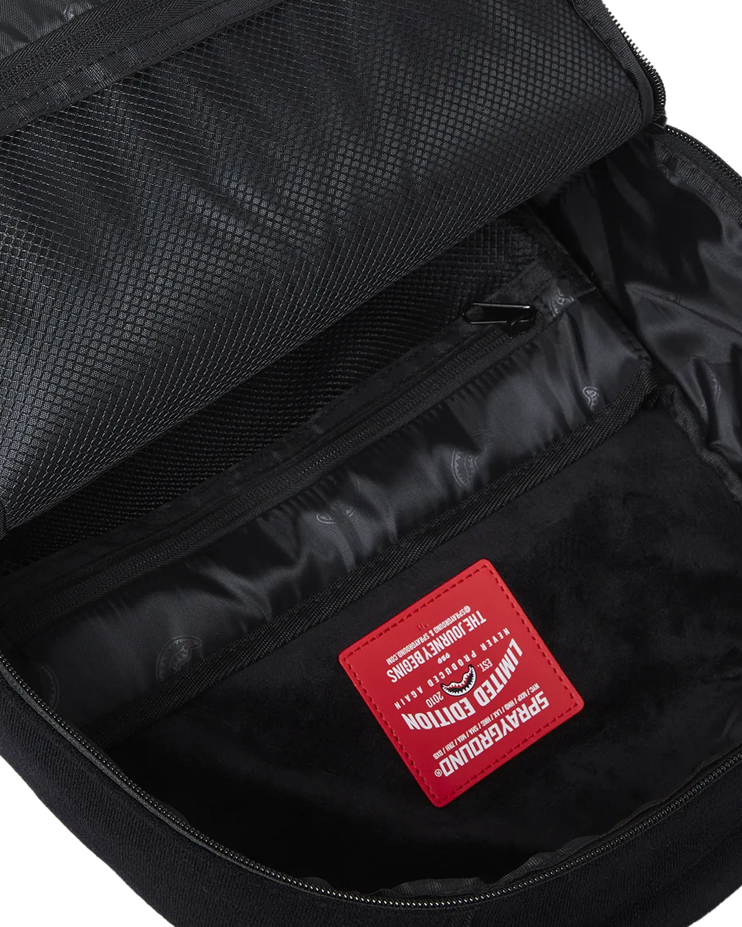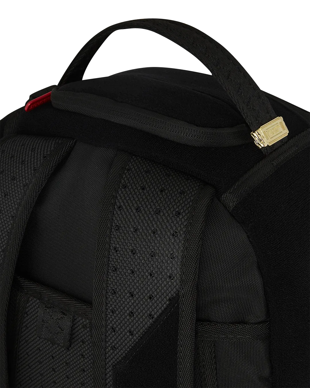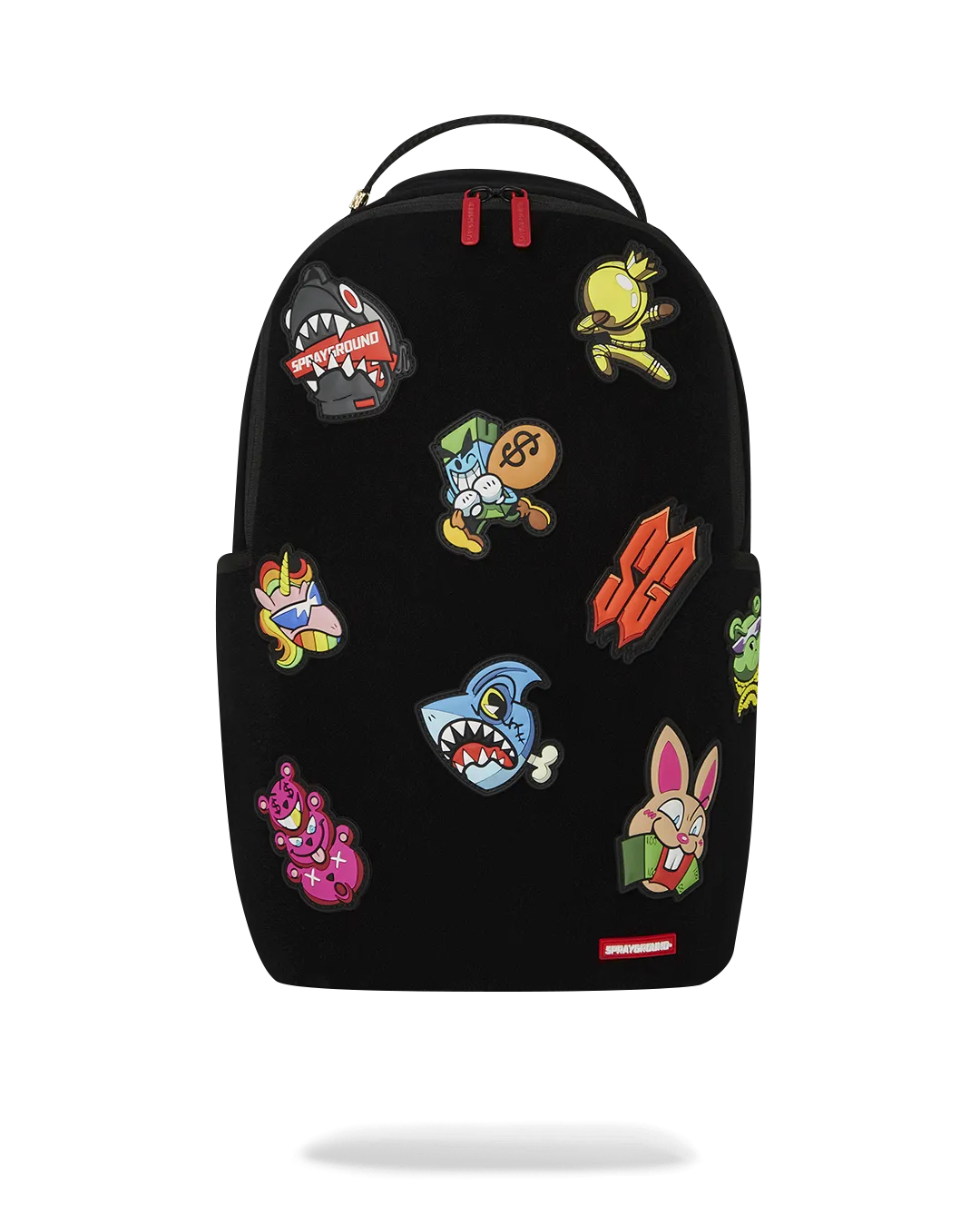 Dimensions: 18″ x 6″ x 11.5″ ? Front zipper pocket ? Side pockets ? Zippered Stash pocket ? Separate velour sunglass compartment ? Ergonomic mesh back padding ? Adjustable Straps for custom sizing ? Gold zippers with metal hardware ? Metal “Sprayground Authentic” badge ? Slide through back sleeve connects to carry-on luggage to free your hands