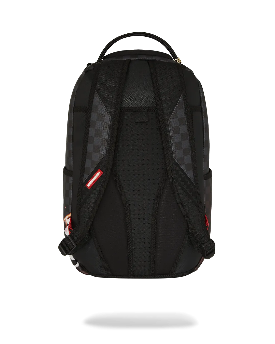 Dimensions: 18″ x 6″ x 11.5″ ? Front zipper pocket ? Side pockets ? Zippered Stash pocket ? Separate velour sunglass compartment ? Ergonomic mesh back padding ? Adjustable Straps for custom sizing ? Gold zippers with metal hardware ? Metal “Sprayground Authentic” badge ? Slide through back sleeve connects to carry-on luggage to free your hands