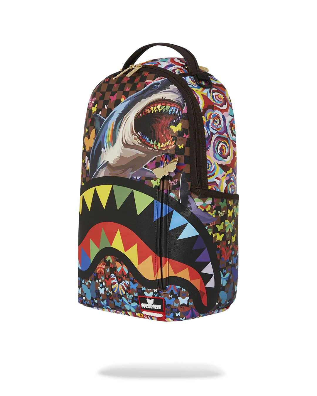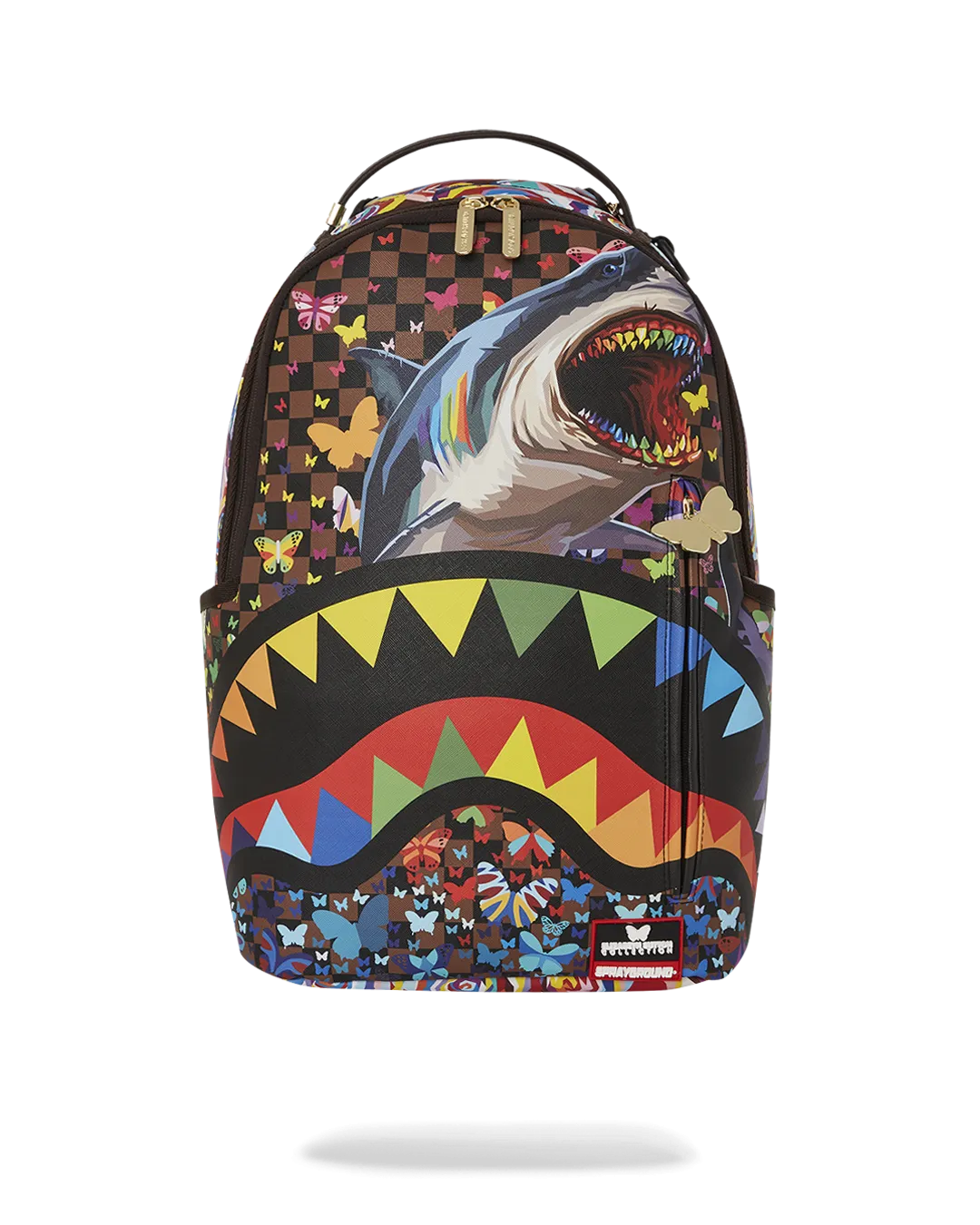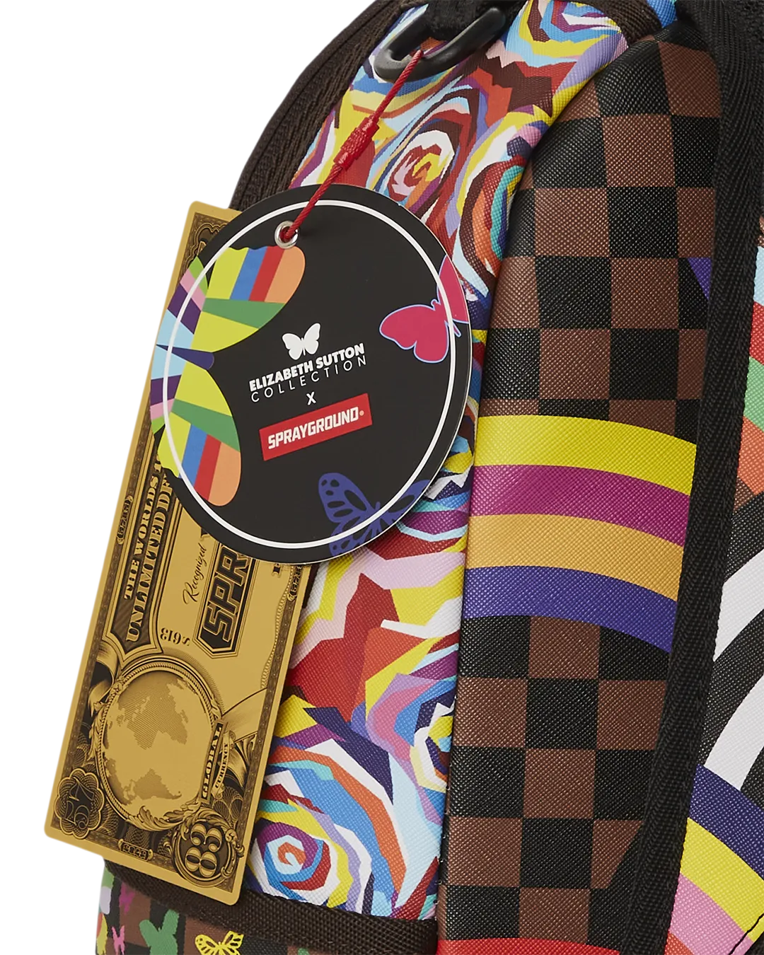 Dimensions: 18″ x 6″ x 11.5″ ? Front zipper pocket ? Side pockets ? Zippered Stash pocket ? Separate velour sunglass compartment ? Ergonomic mesh back padding ? Adjustable Straps for custom sizing ? Gold zippers with metal hardware ? Metal “Sprayground Authentic” badge ? Slide through back sleeve connects to carry-on luggage to free your hands