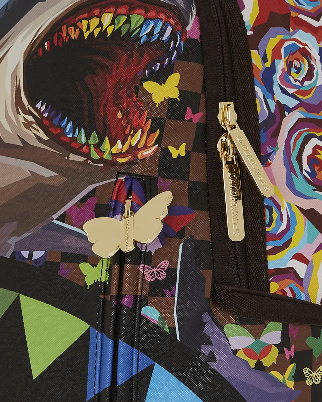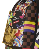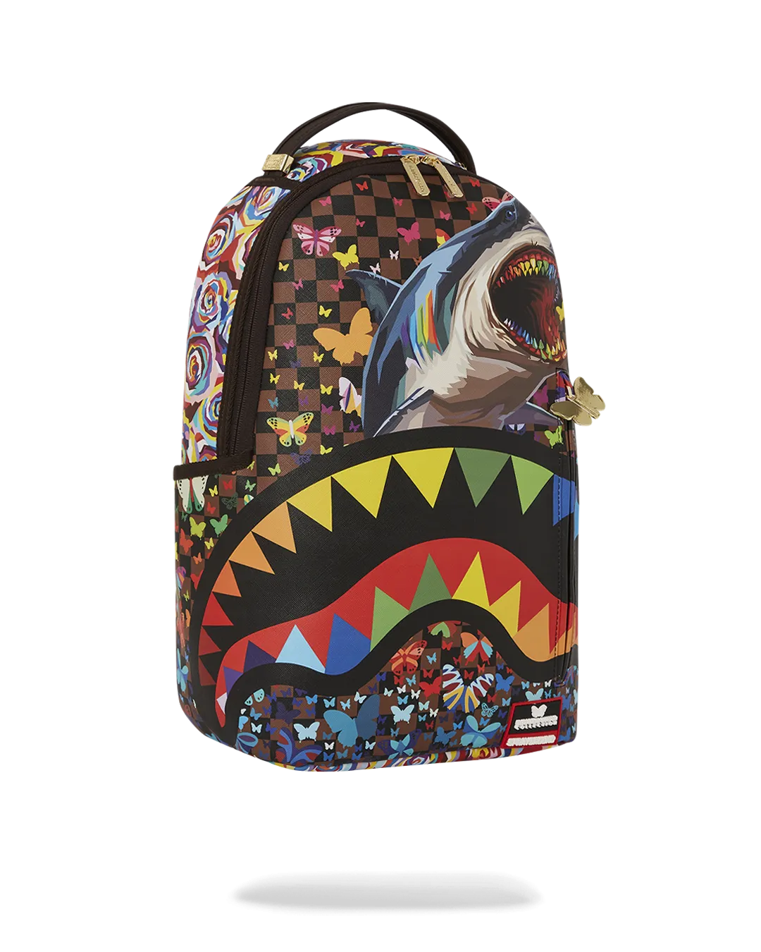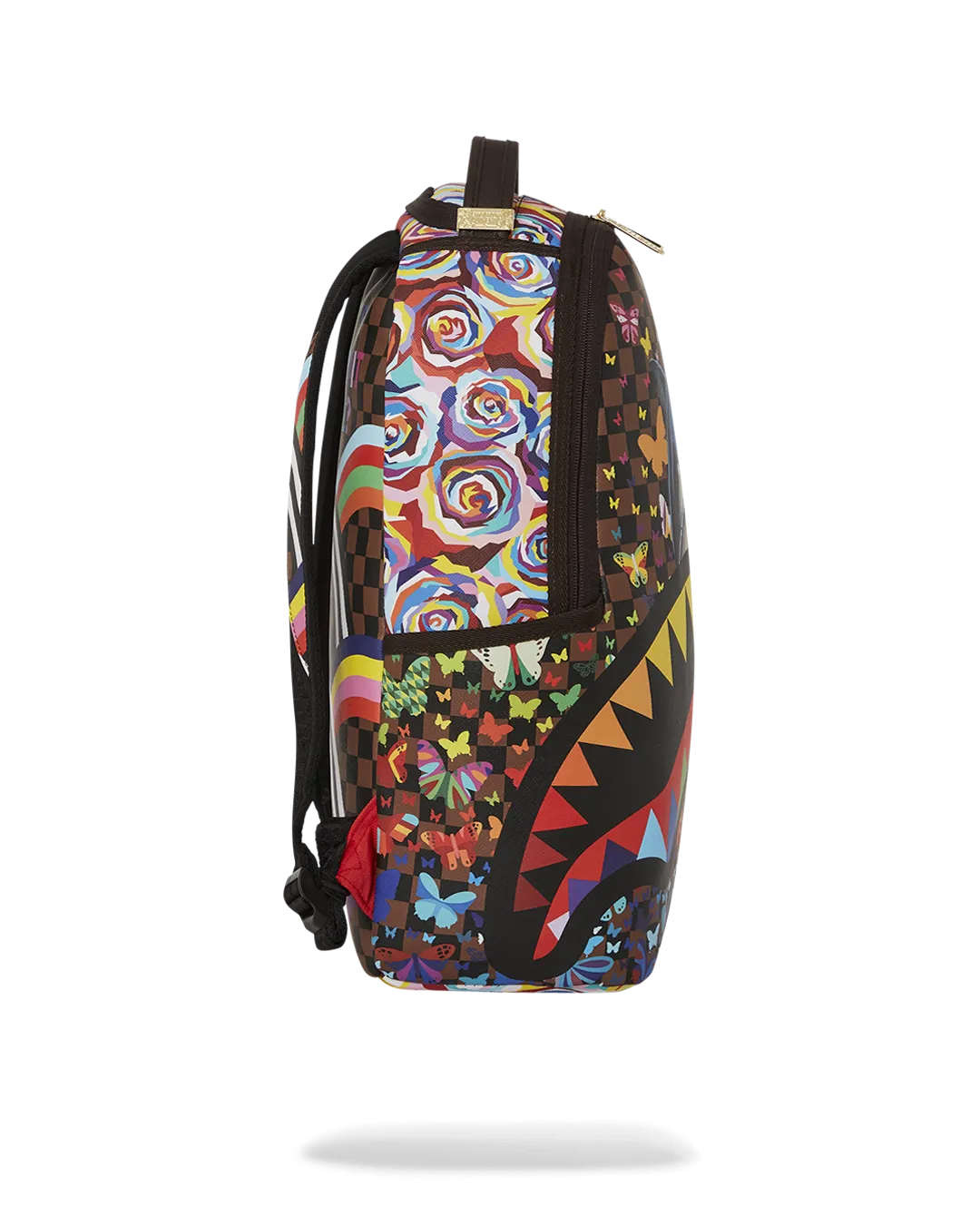 Dimensions: 18″ x 6″ x 11.5″ ? Front zipper pocket ? Side pockets ? Zippered Stash pocket ? Separate velour sunglass compartment ? Ergonomic mesh back padding ? Adjustable Straps for custom sizing ? Gold zippers with metal hardware ? Metal “Sprayground Authentic” badge ? Slide through back sleeve connects to carry-on luggage to free your hands