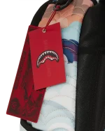 Dimensions: 18″ x 6″ x 11.5″ ? Front zipper pocket ? Side pockets ? Zippered Stash pocket ? Separate velour sunglass compartment ? Ergonomic mesh back padding ? Adjustable Straps for custom sizing ? Gold zippers with metal hardware ? Metal “Sprayground Authentic” badge ? Slide through back sleeve connects to carry-on luggage to free your hands