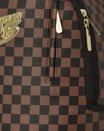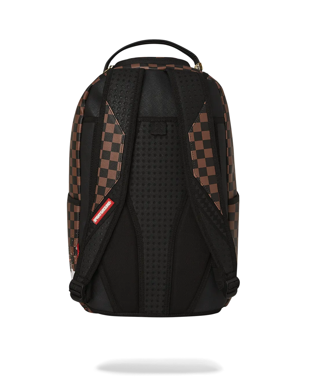 Dimensions: 18″ x 6″ x 11.5″ ? Front zipper pocket ? Side pockets ? Zippered Stash pocket ? Separate velour sunglass compartment ? Ergonomic mesh back padding ? Adjustable Straps for custom sizing ? Gold zippers with metal hardware ? Metal “Sprayground Authentic” badge ? Slide through back sleeve connects to carry-on luggage to free your hands