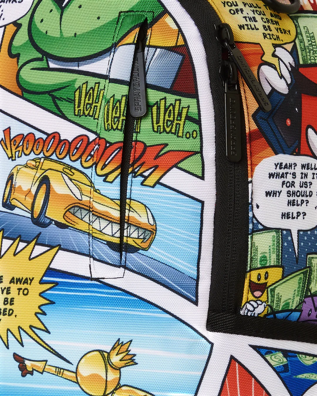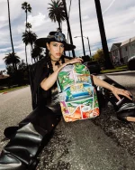 Dimensions: 18″ x 6″ x 11.5″ ? Front zipper pocket ? Side pockets ? Zippered Stash pocket ? Separate velour sunglass compartment ? Ergonomic mesh back padding ? Adjustable Straps for custom sizing ? Gold zippers with metal hardware ? Metal “Sprayground Authentic” badge ? Slide through back sleeve connects to carry-on luggage to free your hands