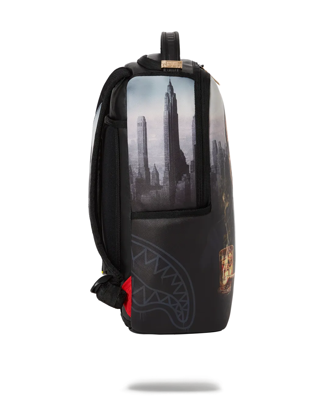Dimensions: 18″ x 6″ x 11.5″ ? Front zipper pocket ? Side pockets ? Zippered Stash pocket ? Separate velour sunglass compartment ? Ergonomic mesh back padding ? Adjustable Straps for custom sizing ? Gold zippers with metal hardware ? Metal “Sprayground Authentic” badge ? Slide through back sleeve connects to carry-on luggage to free your hands