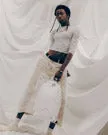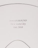 Cut and sew sharkmouth shape with embossed silver foil lettering. |
