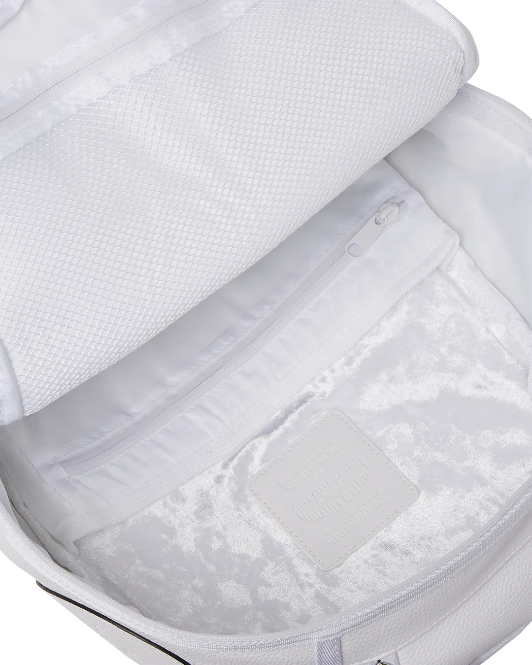Dimensions: 18″ x 6″ x 11.5″ ? Front zipper pocket ? Side pockets ? Zippered Stash pocket ? Separate velour sunglass compartment ? Ergonomic mesh back padding ? Adjustable Straps for custom sizing ? Gold zippers with metal hardware ? Metal “Sprayground Authentic” badge ? Slide through back sleeve connects to carry-on luggage to free your hands